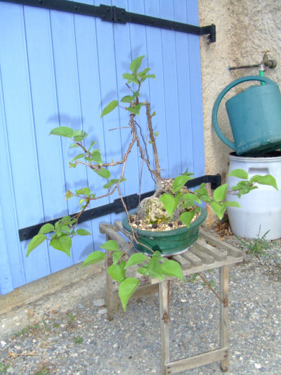 j’ai un abricotier issue d’un noyau prelever dessous l’abricotier de mon grand pere et depuis 98 je le cultivait en pot de culture sur une rocher en abaissant le niveau de la terre chaque année, et cette année je l’ai rempoté dans un pot a bonsai.