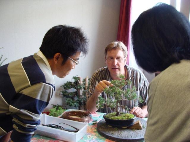 C’est donc avec beaucoup de calme, de timidité et naturel qu’il est venu nous transmettre ses acquis. Âgé de seulement 38 ans, sa jeunesse n’est pas sans intérêt pour nous, car plus ouvert sur le monde moderne et occidental, capable de s’adapter facilement à nos habitudes. Néanmoins, il reste japonais dans sa conviction que seule la pratique compte pour progresser dans le bonsaï.