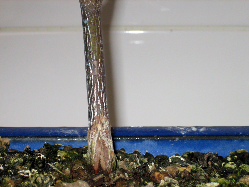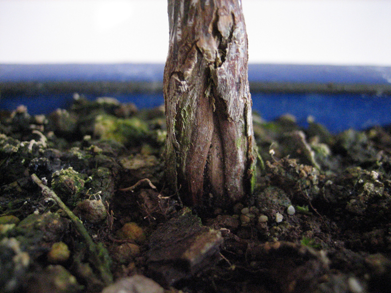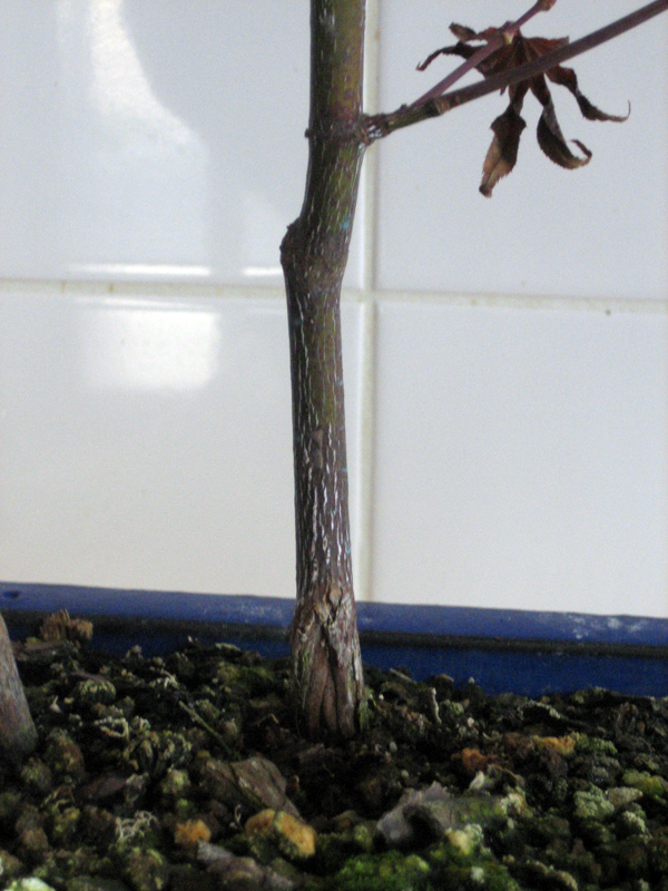 Comme vous pouvez le voir sur la photo ci dessous a la base du nebari il y a une grosse fissure, comme il se faisait manger par quelque chose . j’ ai regardé dans quelques livres cela me fait penser a un chancre ou un genre de maladie incurable sur acer !