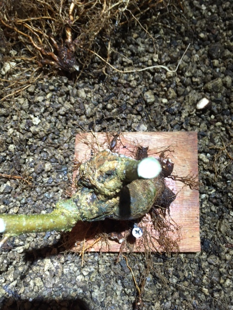 (je me rend compte que je n’ai pas de photos du racinaire pendant le rempotage, mais çà avance bien…la base s’épaissit tranquillement, et les coupes sur le tronc cicatrisent bien aussi)
