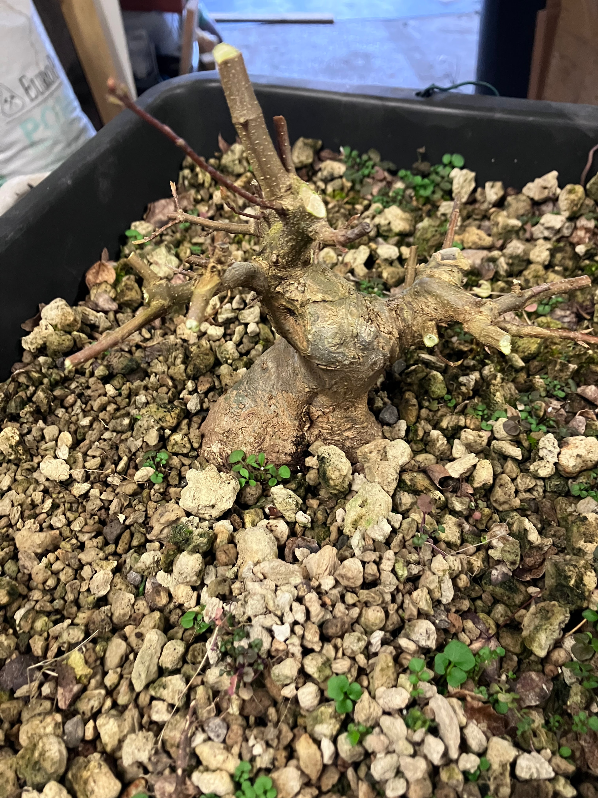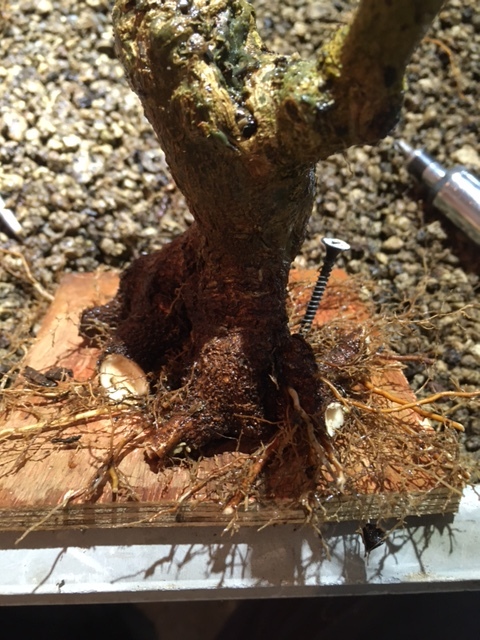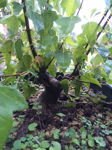 Au stade actuel j’ai les 3 branches nécessaires pour un shohin, ma première branche est assez forte, et les cicatrices des grosses tailles sont quasiment toutes refermées…