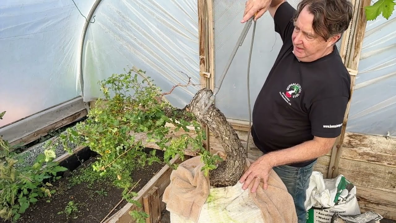 Les japonais plongent leurs arbres en les tenant par le pot à lenvers dans des bassines de mélange eau liquide à Jin en traitement dhiver (ils ne mettent pas la partie racinaire dans le liquide bien entendu).