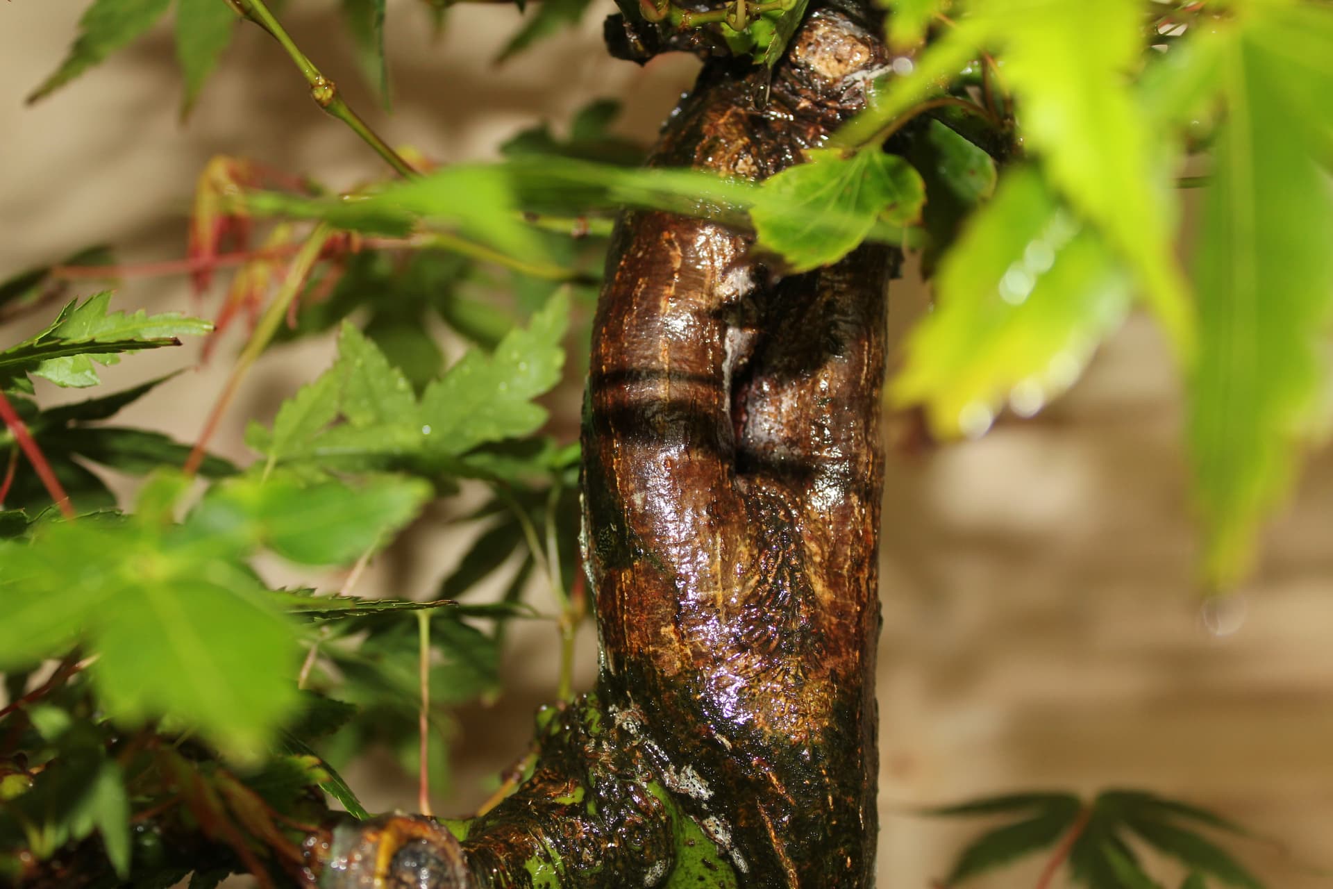 Donc voici quelques photos de Acer Palmatum 1. La cicatrice énorme en tête se referme ( il me faydra encore 1 an ), La ramification aussi.