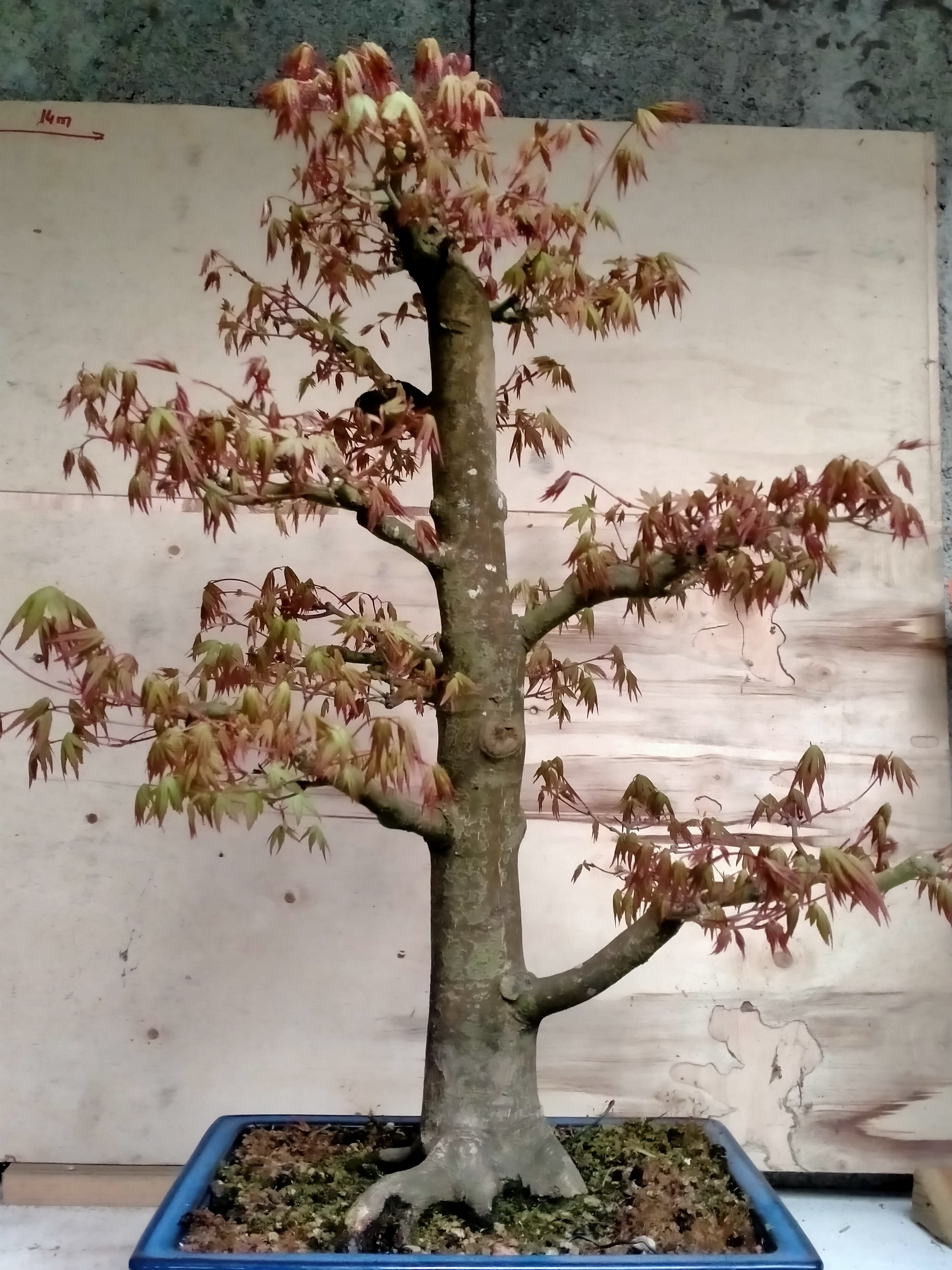 L'inclinaison est à corriger au prochain rempotage. Là il est vrai que je réduis en hauteur le racinaire pour le faire s'étaler. Progressivement, l'arbre