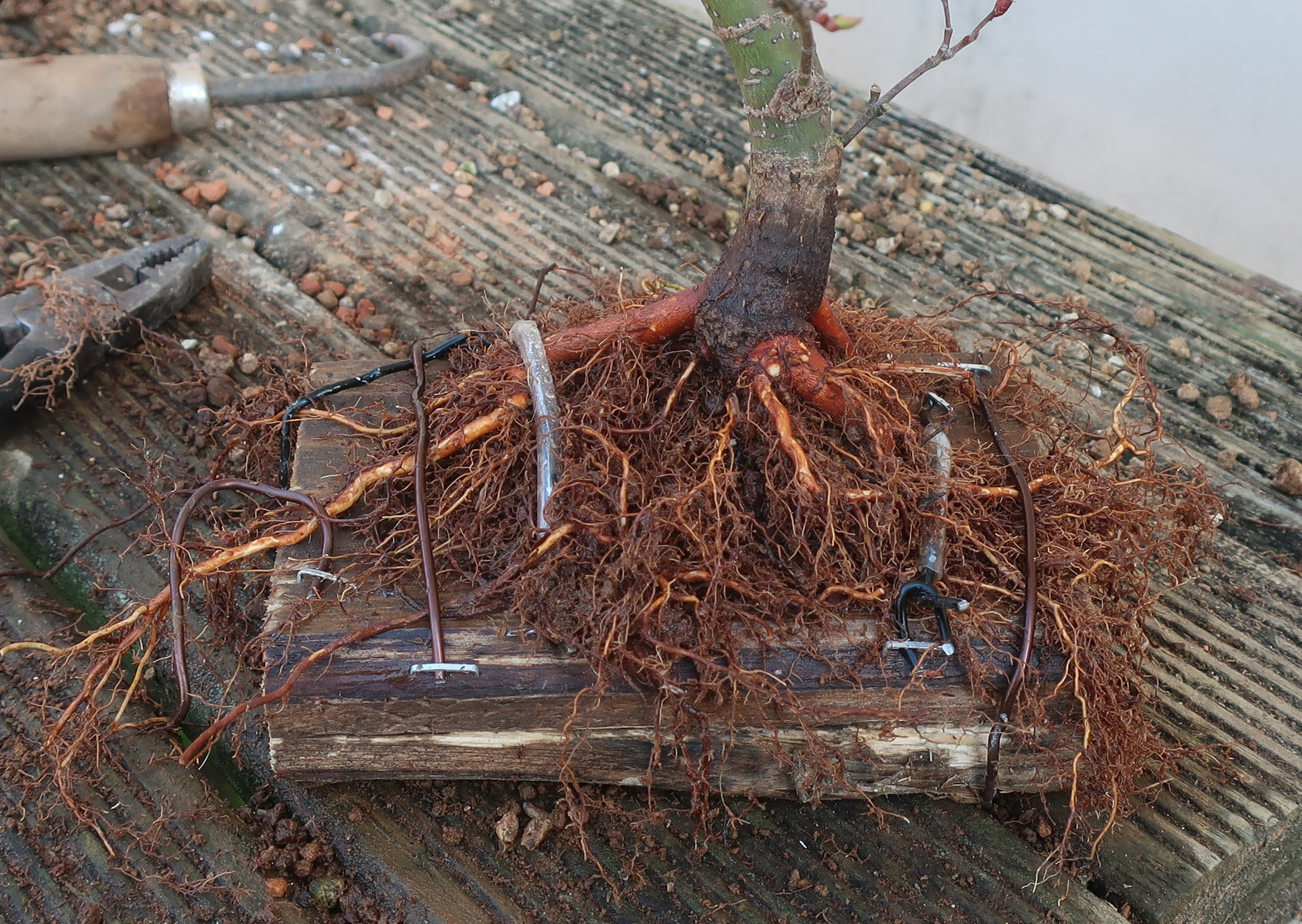 j’ai vu sur une photo du nebari de ton arbre que les racines matures développent également cette écorce craquelée, ce qui est très interessant d’un point de vue esthétique. Je ne regrette donc pas de l’avoir marcotté