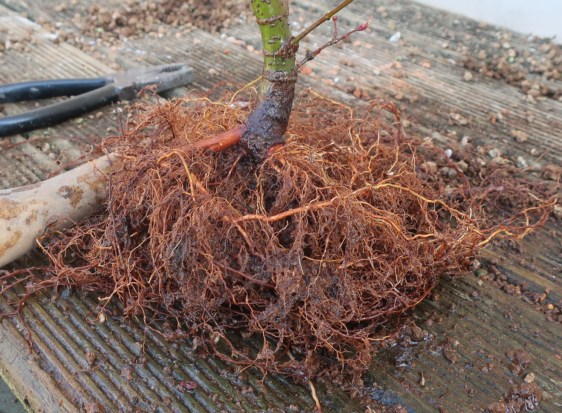 Au sevrage je prends l’initiative de travailler le racinaire et de le mettre à plat.