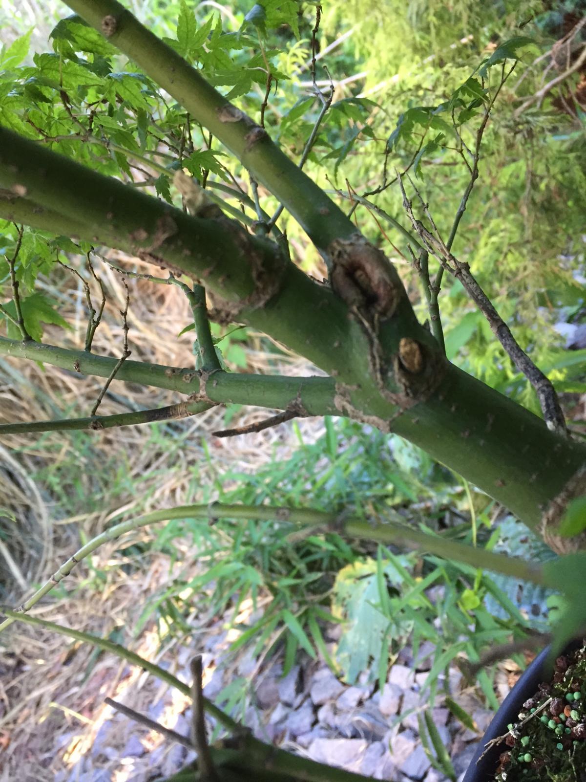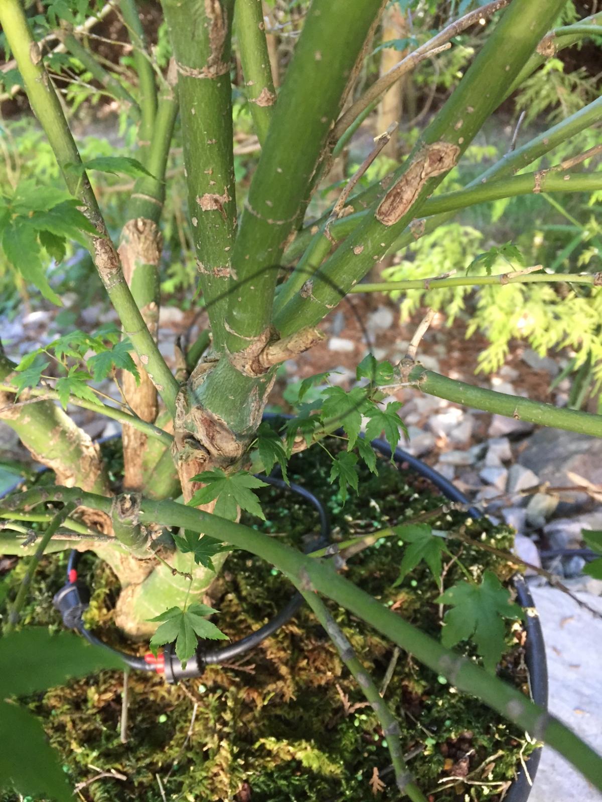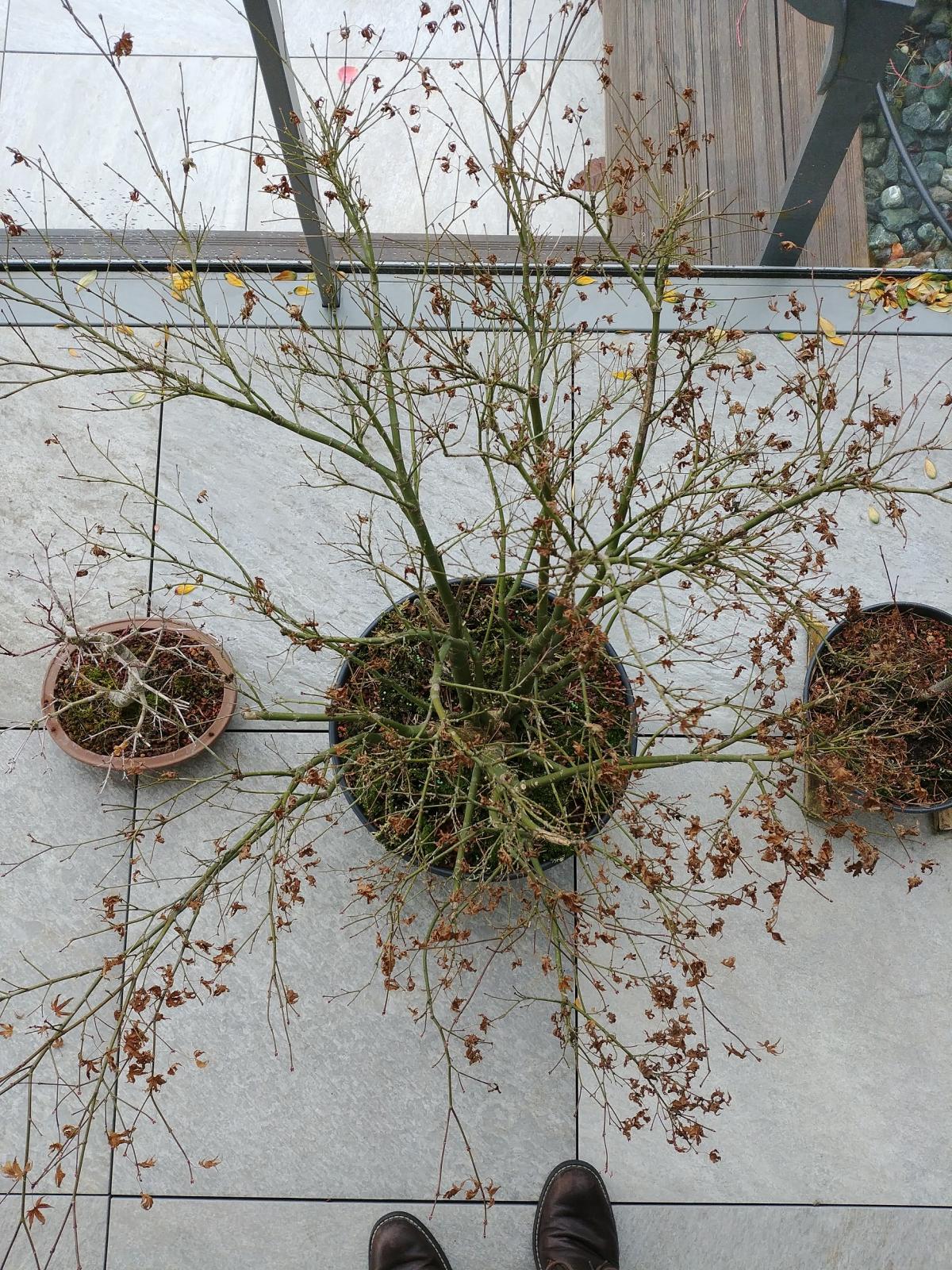 le programme pour cette année, est clair, c'est pousse libre. Je ne peux m'empêcher de cogiter au programme pour l'année prochaine, sous réserve d'une bonne reprise, je tenterais bien un rempotage, dans un pot moins haut mais plus large. Histoire de faire sauter les racines trop hautes et commencer à travailler le nébari. Ce sera trop tôt ou c'est raisonnable ?