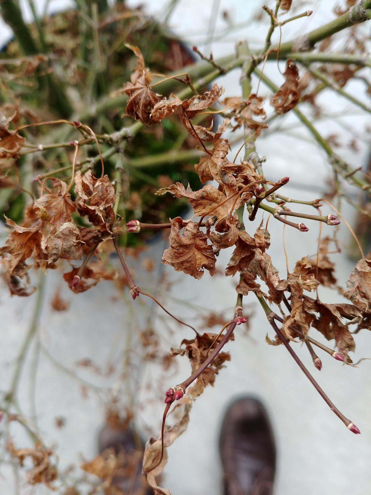 Petite question : pourquoi certains arbres perdent leurs feuilles, et sur d'autre, les feuilles restent accrochées et sèchent ? Sur celui ci par exemple, une bonne partie est tombées, mais ils en reste beaucoup accrochées, qui ont séchés. Est ce une indication d'une carence quelconque ? J’imagine que je peux couper au niveau du pétiole, histoire de voir plus claire et prendre quelques photos...