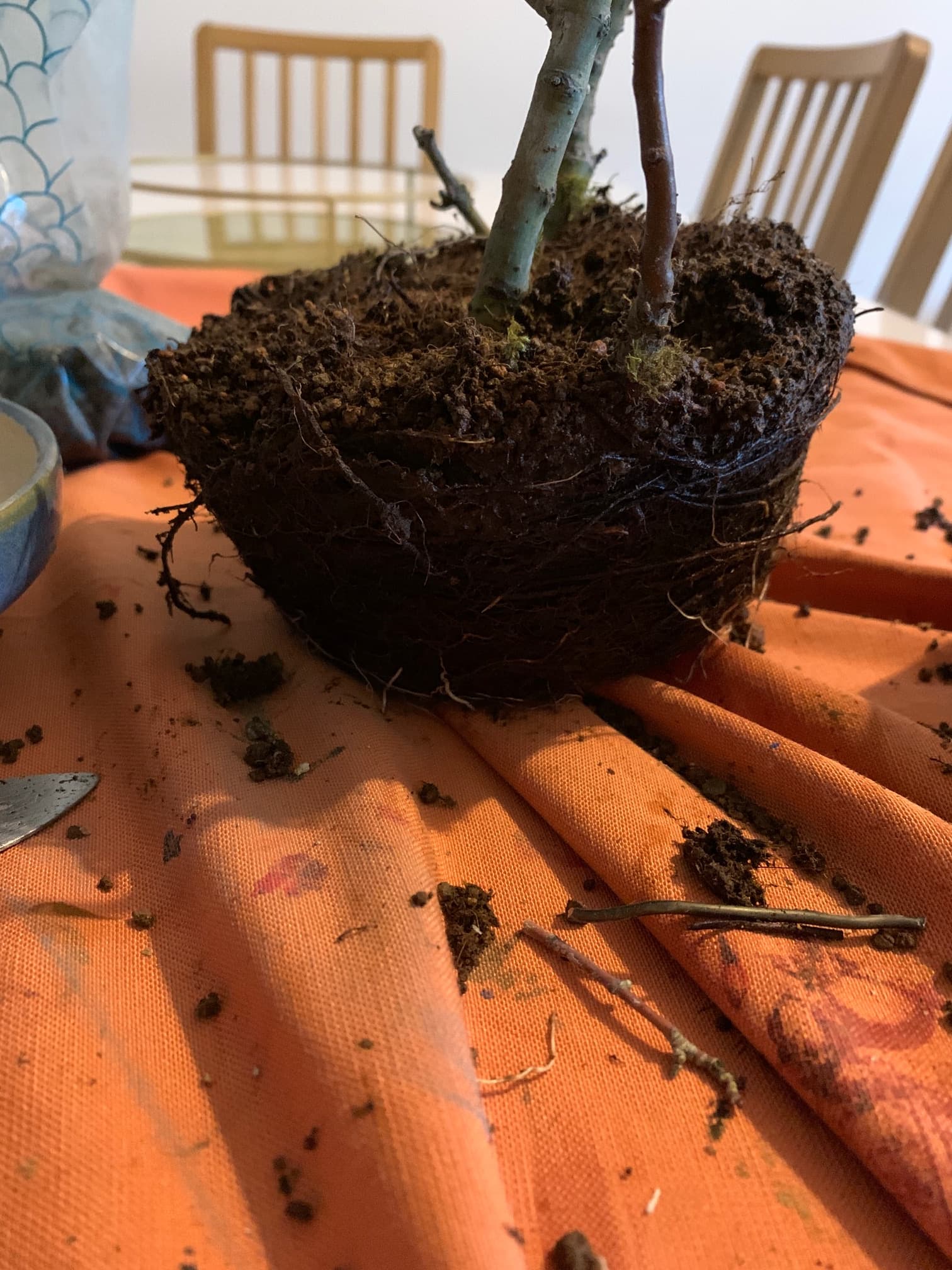 La chance que j’ai eu c’est que chaque plant a des racines que d’un côté mais du bon.