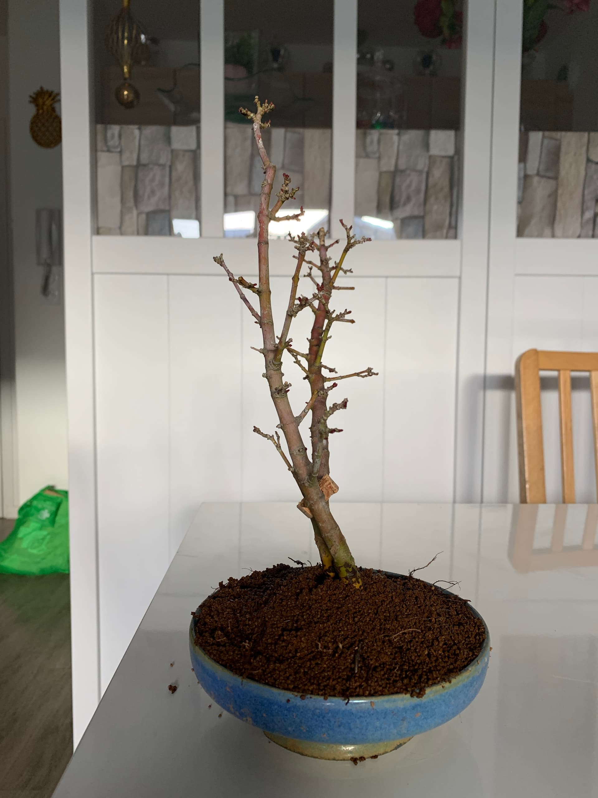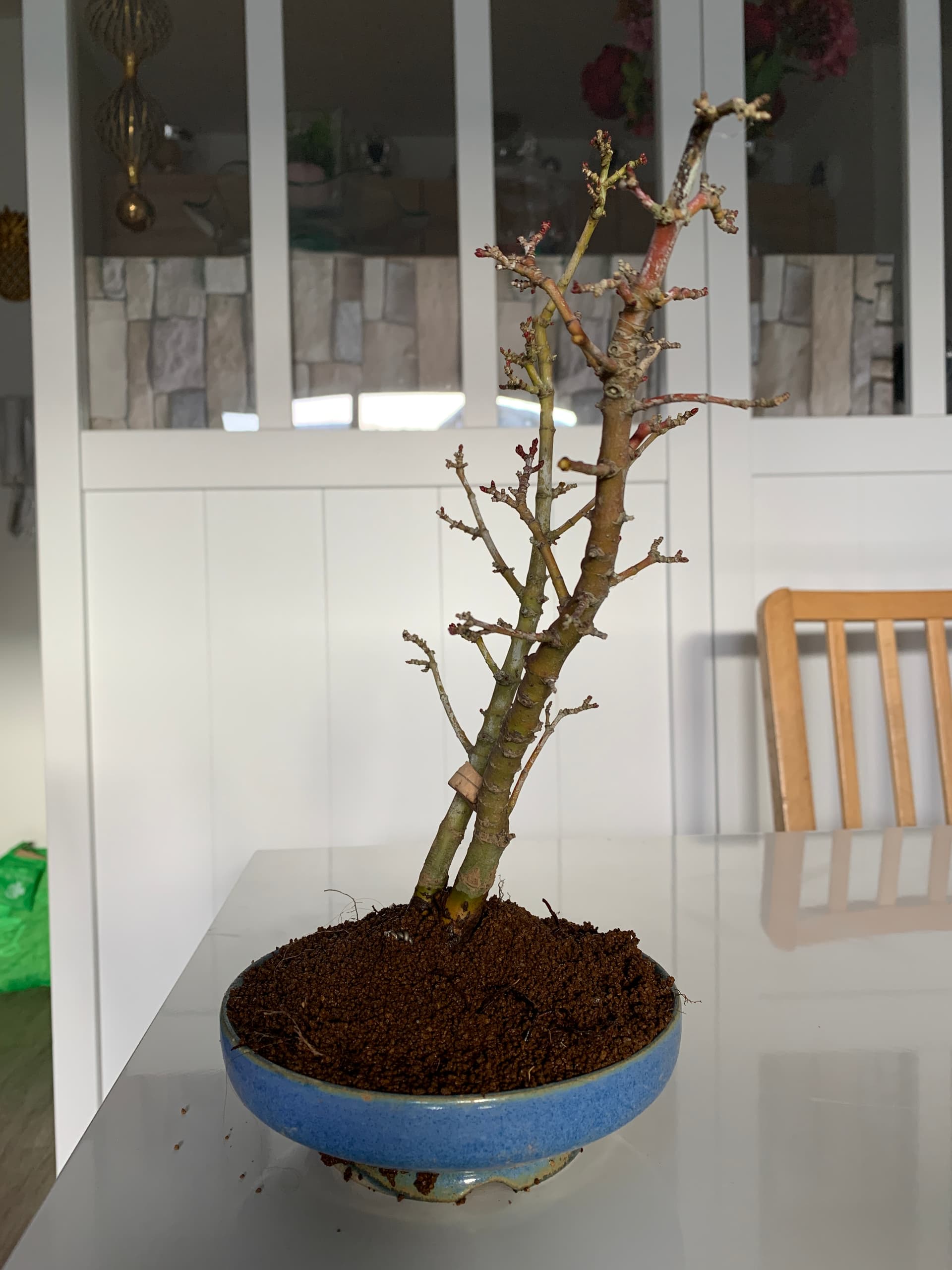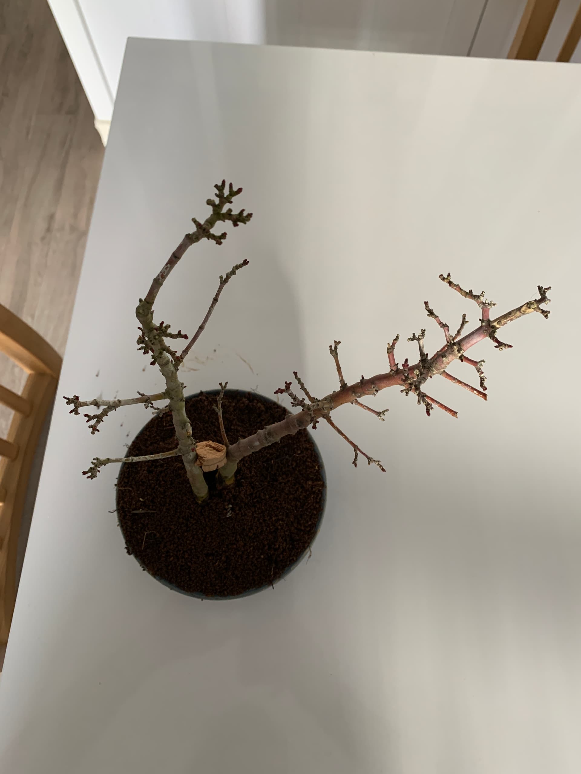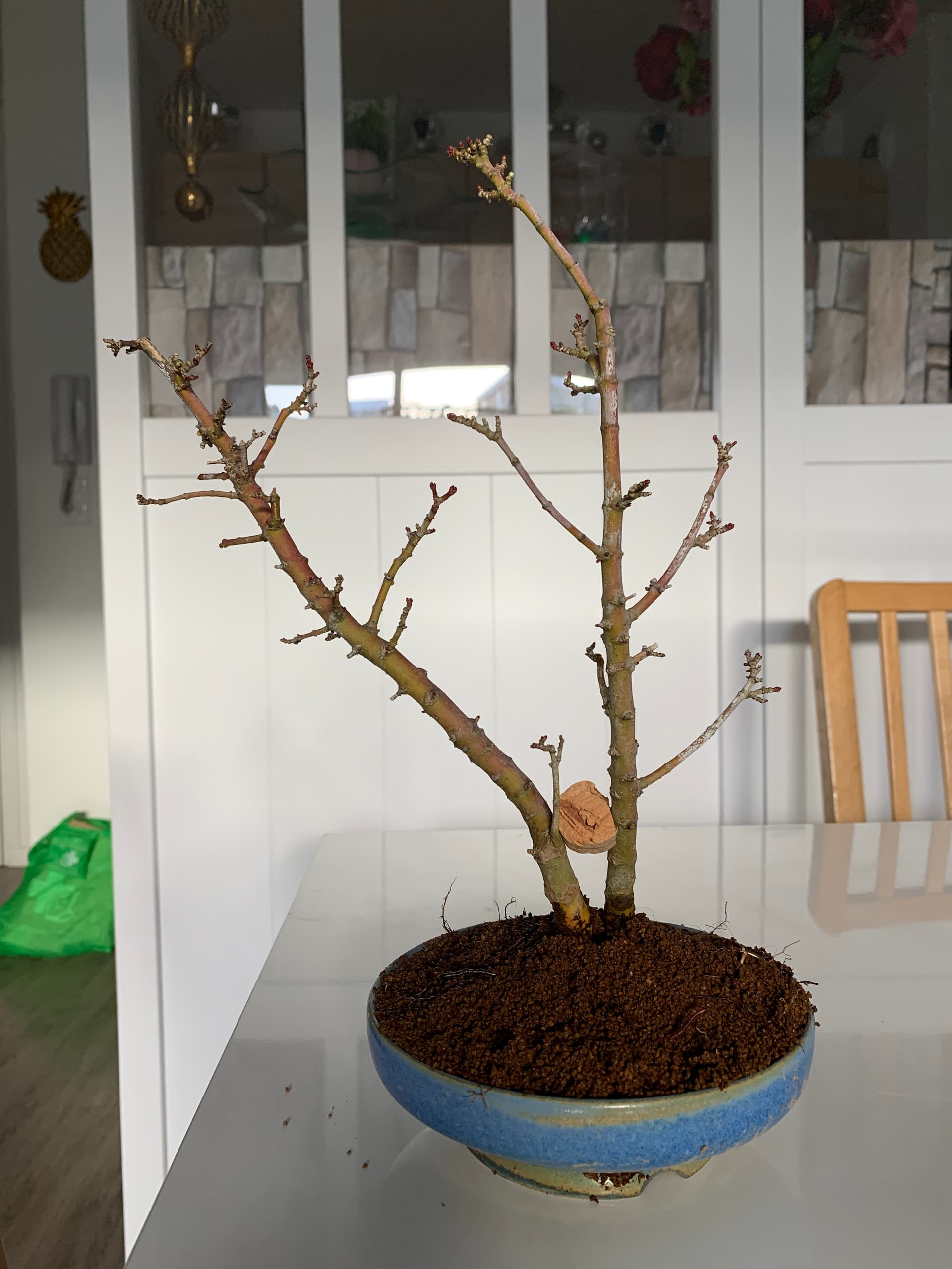 Ensuite le tout a été placé dans un pot de culture dans 100% pumice et le tronc fille a été rabattu (photos prochainement).
