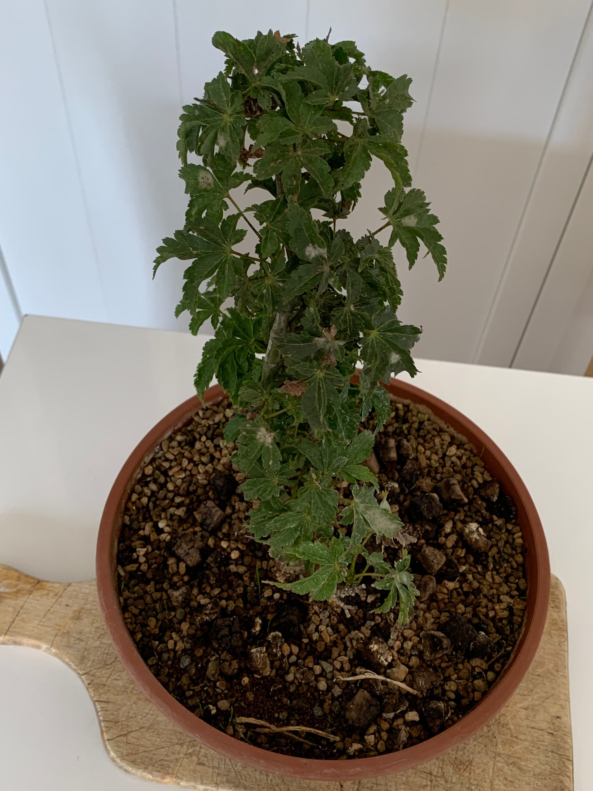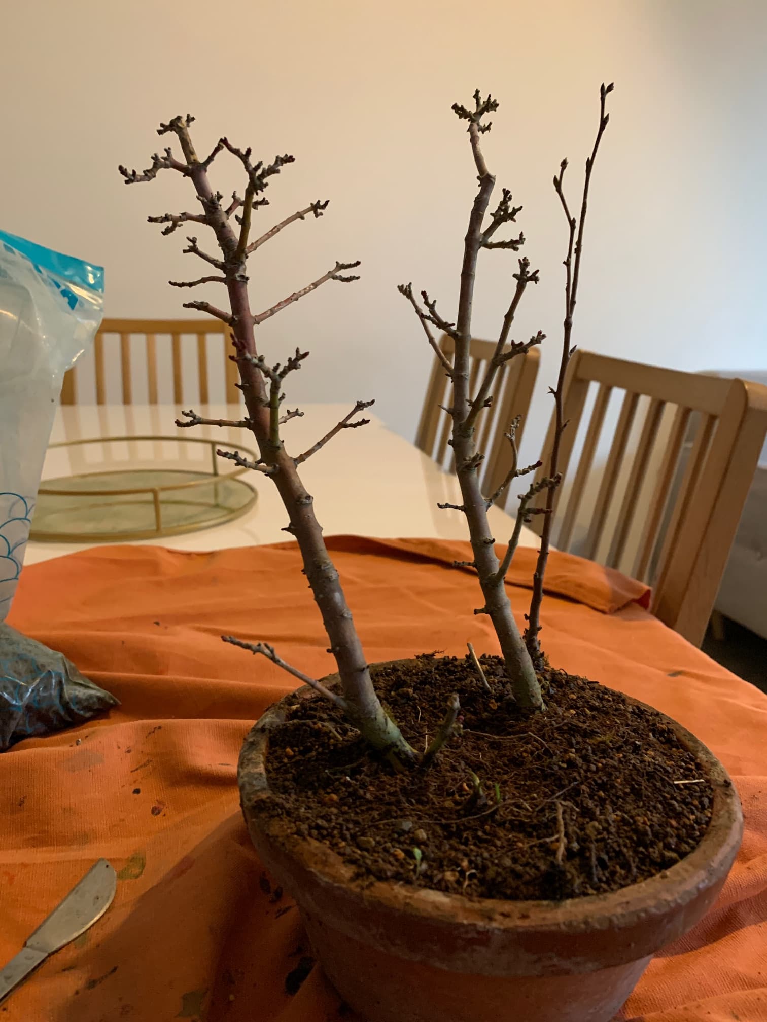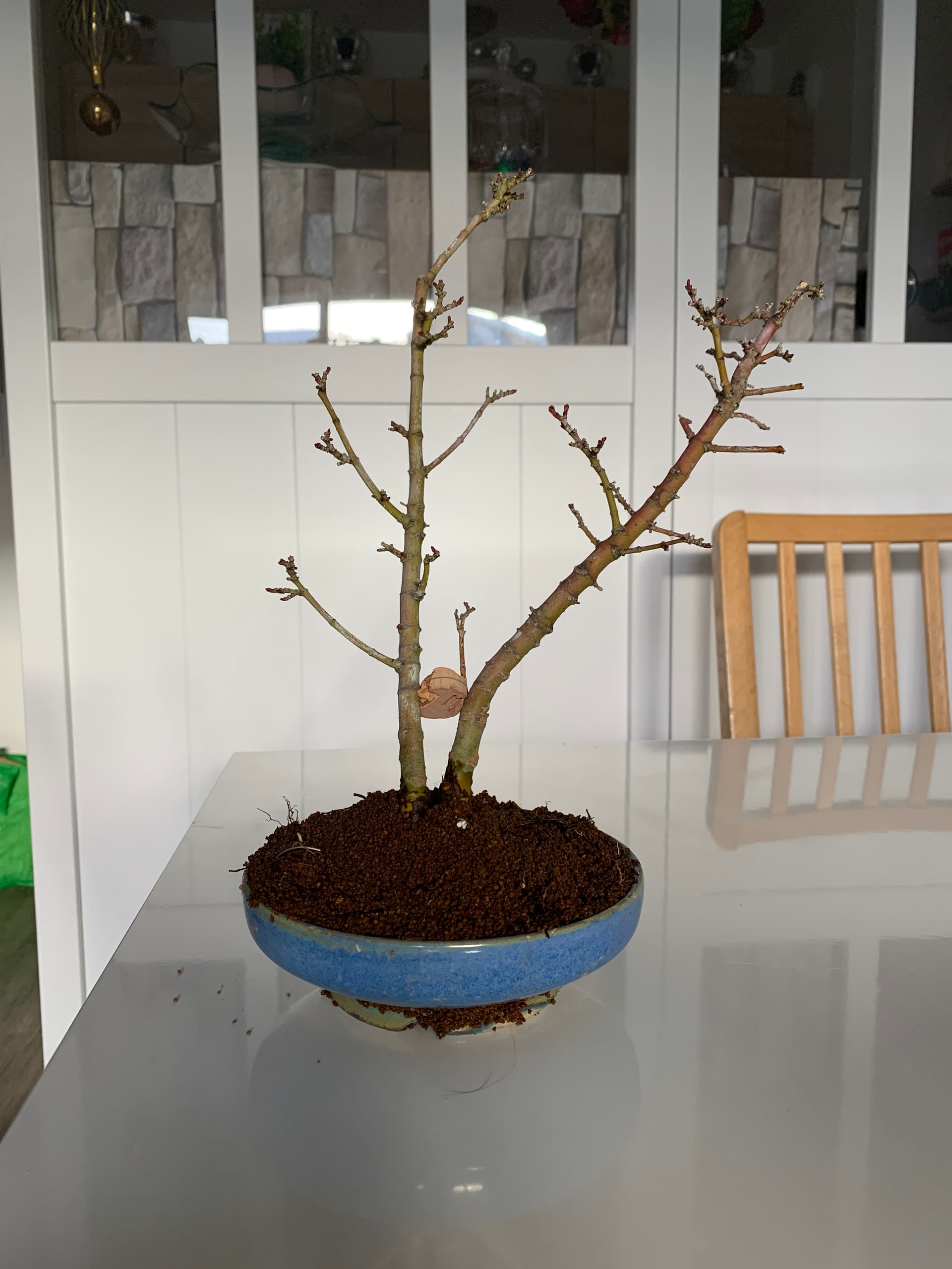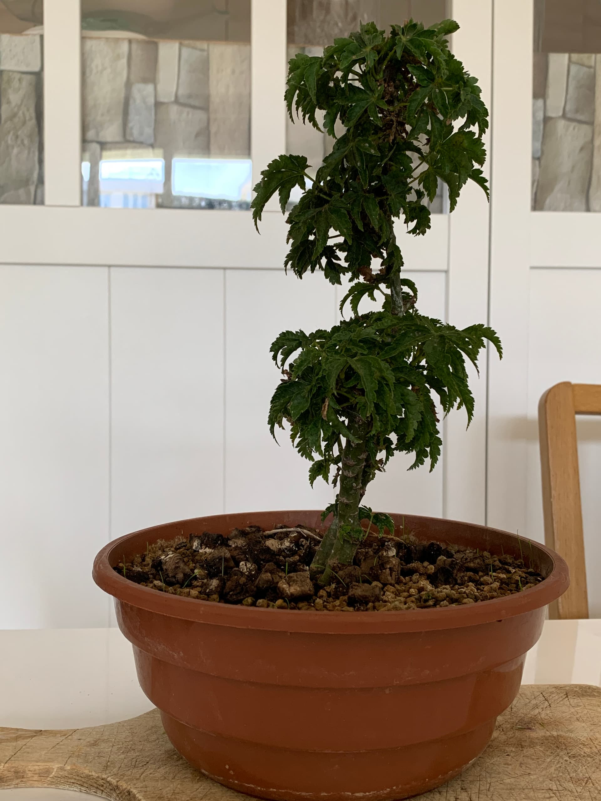 Ensuite le tout a été placé dans un pot de culture dans 100% pumice et le tronc fille a été rabattu (photos prochainement).