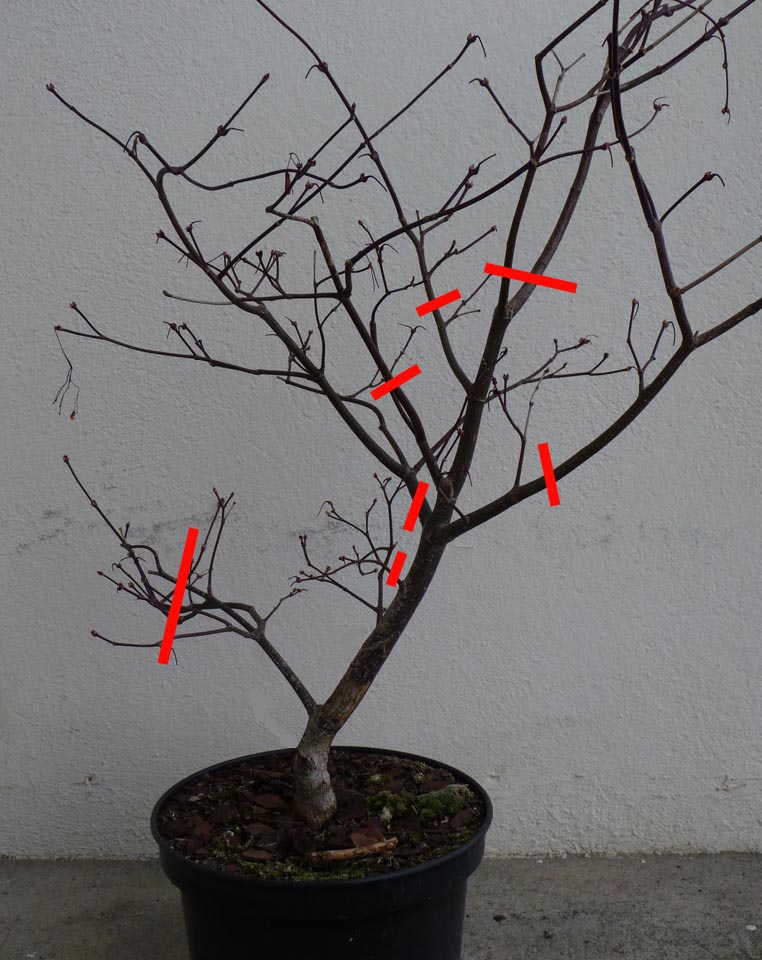 j’ai fais l’acquisition de cet acer palmatum en pépinière l’été dernier et il va bientôt être temps de le rempoter et de le tailler. Pour cela j’ai déjà penser à une idée de mise en forme, mais j’aimerai avant de faire quoi que ce soit avoir votre avis et d’autres idées sur la question :