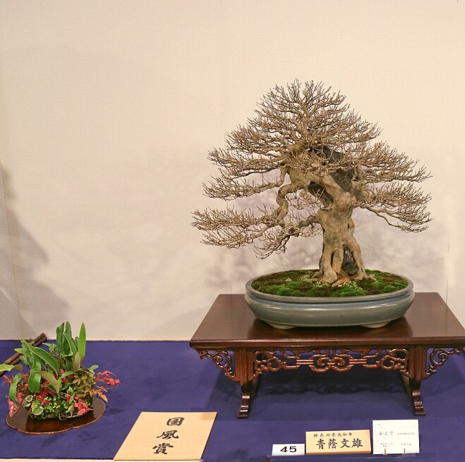 Pour résumer un shitakusa est une seule plante dans un pot destiné à accompagner un bonsaï en exposition.