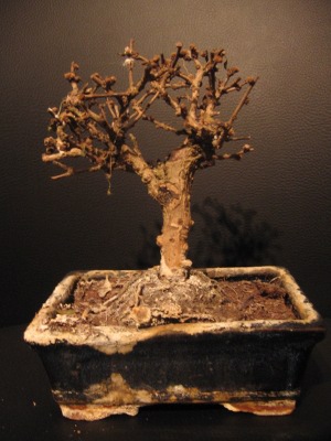 Alors voilà ma situation: un ami m’a donné ses 2 bonsaïs complètement désséché et de toute évidence foutu; mais partant du principe que la nature est imprévisible, je suis prêt à relever le défi pour les réssuciter ![]()