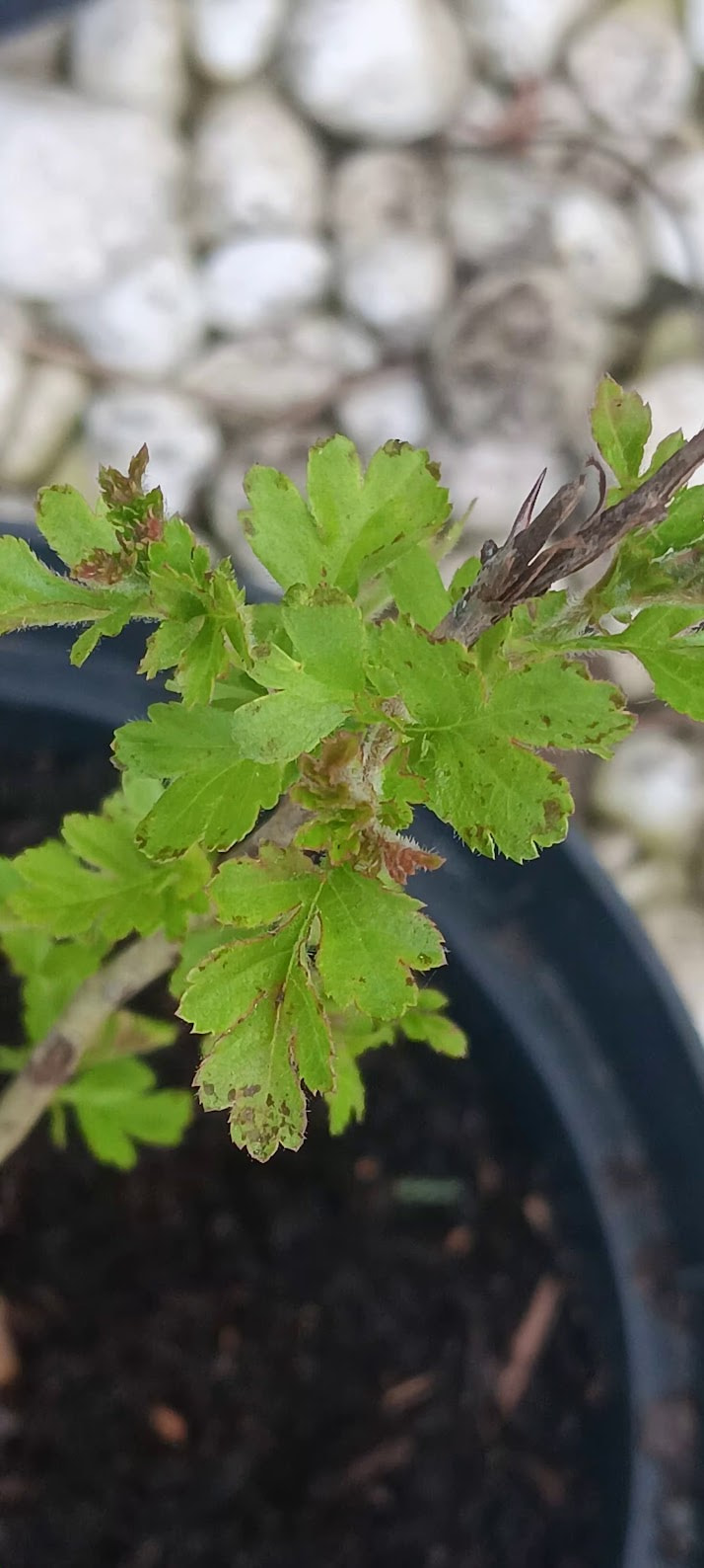 Voici une jeune aubépine que j’ai prélevée dans une haie aujourd’hui. J’ai coupé la racine pivot en essayant de garder le maximum de radicelles. Pour le substrat, petit gravier au fond, un peu de sable et de terreau. Je me suis dit que pour une reprise, du terreau de jardin était suffisant (?).