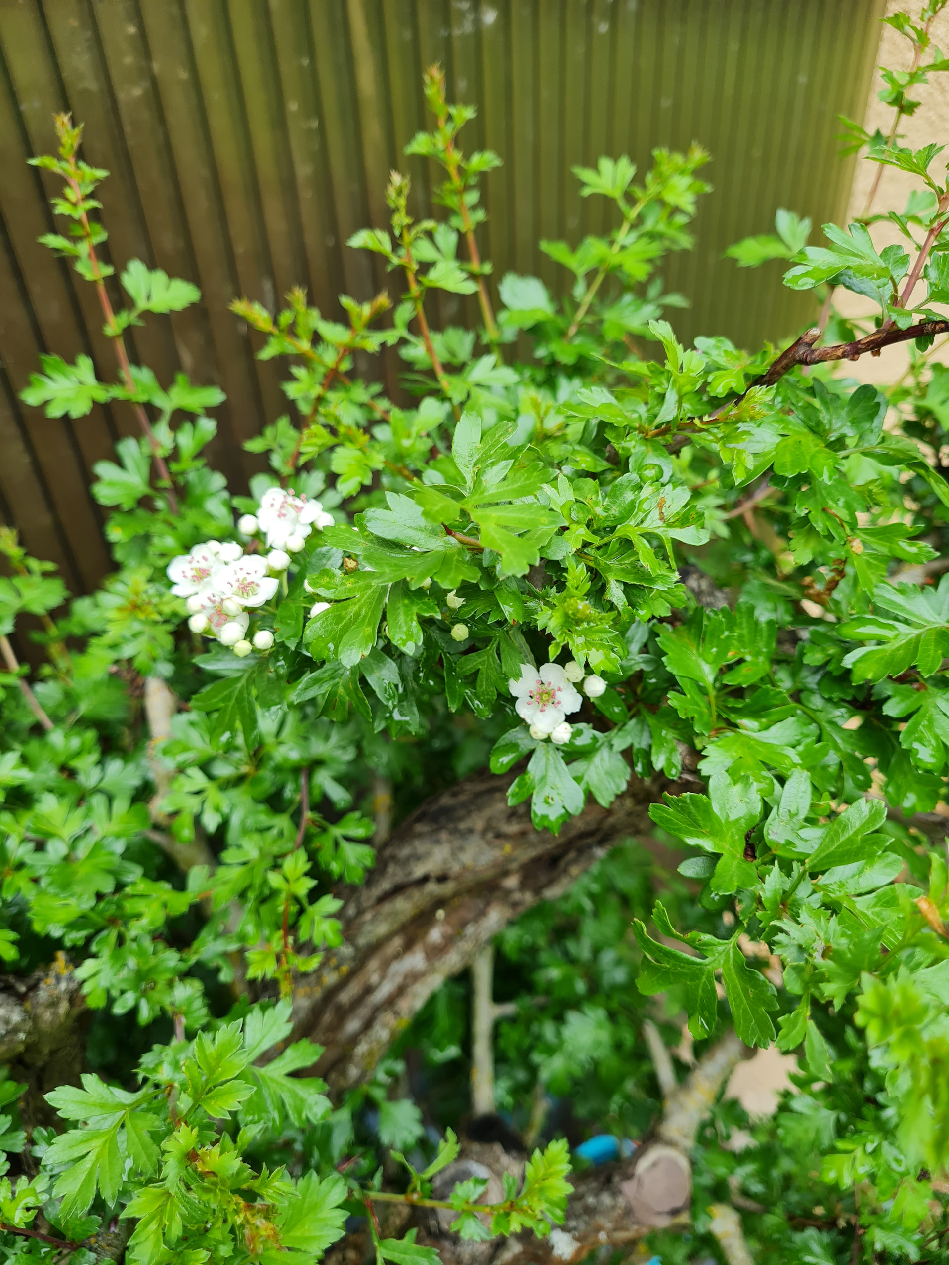 Mai 2025 elle me fait … quelques fleurs, une première sur mes aubépines, je pense que je les taille trop donc ça limite la floraison.