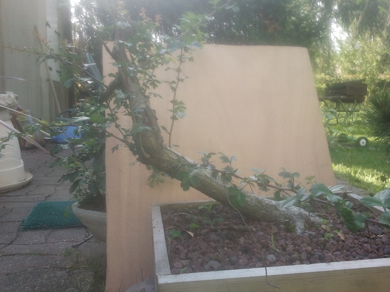 Cette hiver j’ai prélevé cette aubepine qui me plaisait pour faire mon premier shakkan.Le prélevement ces relitivement bien passé bien qu’il y est un coté un peu dépourvu de racine .Mise en caisse dans pouzzo +terre d’origine pour commencer les travaux l’année prochaine.Je me pose quelque question sur la face a choisir car d’un coté comme de l’autre elle a ces petits defauts.