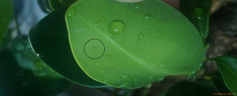 En effet, en plus de cette perte de feuille que je trouve de plus en plus alarmante, j’ai cru déceler ce matin des fils de toiles au niveau de la base de mon ficus ainsi qu’entre certaines feuilles. Après une osculation poussée j’ai trouvé ceci :