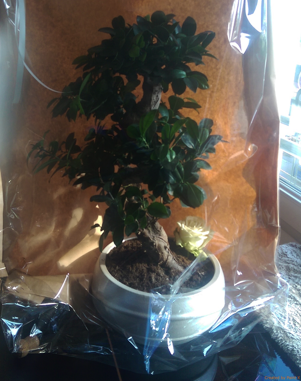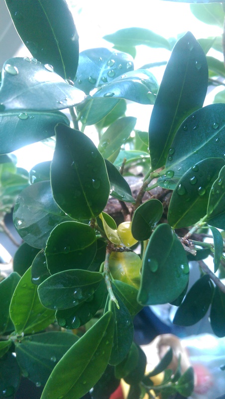 J’ai en ma possession depuis le 10 octobre dernier, soit quelque chose comme près de 40 jours, un ficus ginseng bonsai, que l’on m’a offert, provenant d'un petit fleuriste. Et comme c’est ma première plante verte de ce genre, je n’y connais rien.