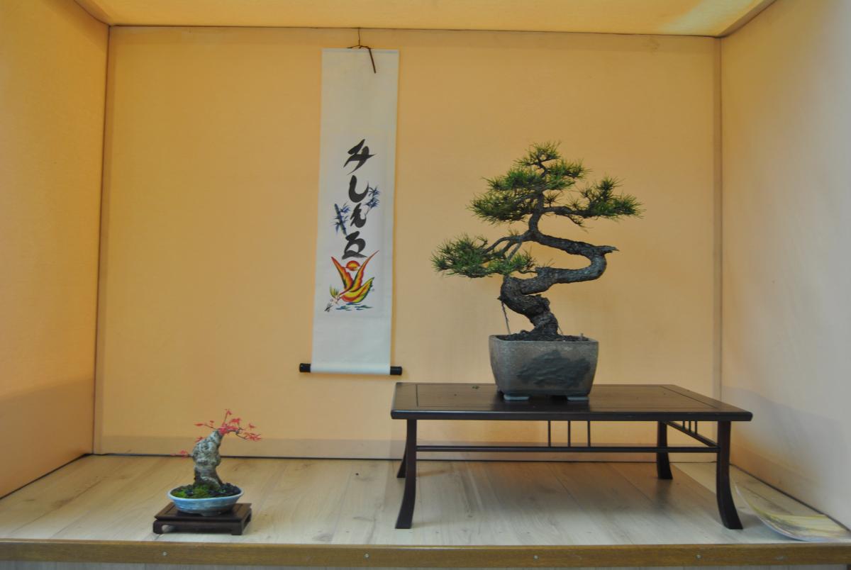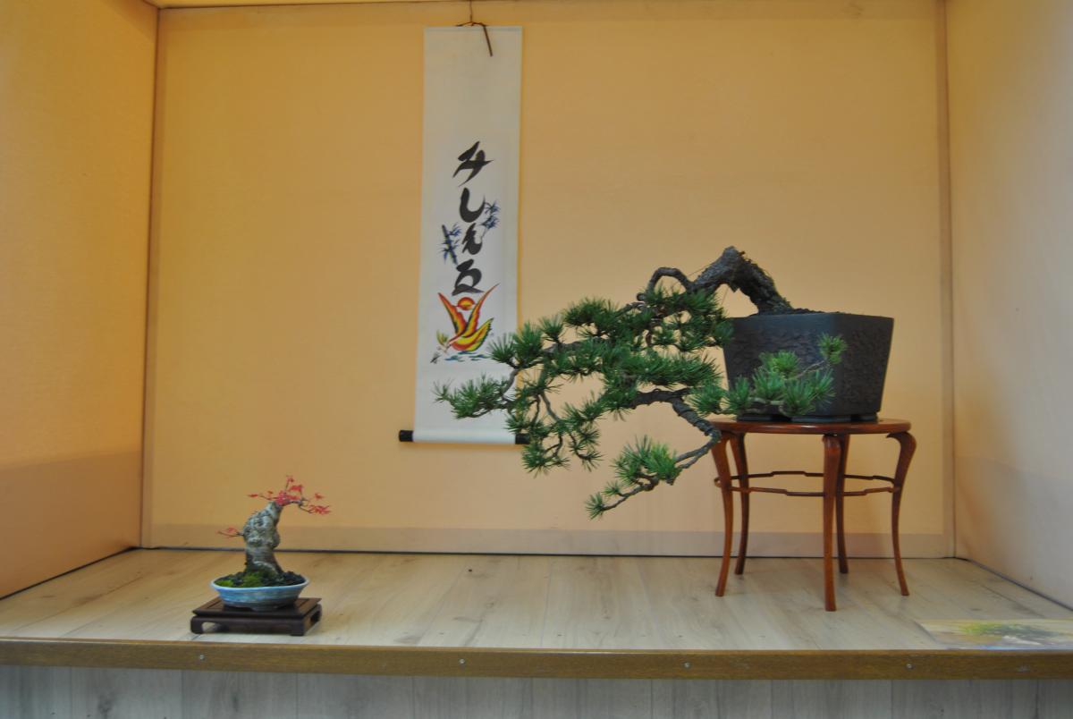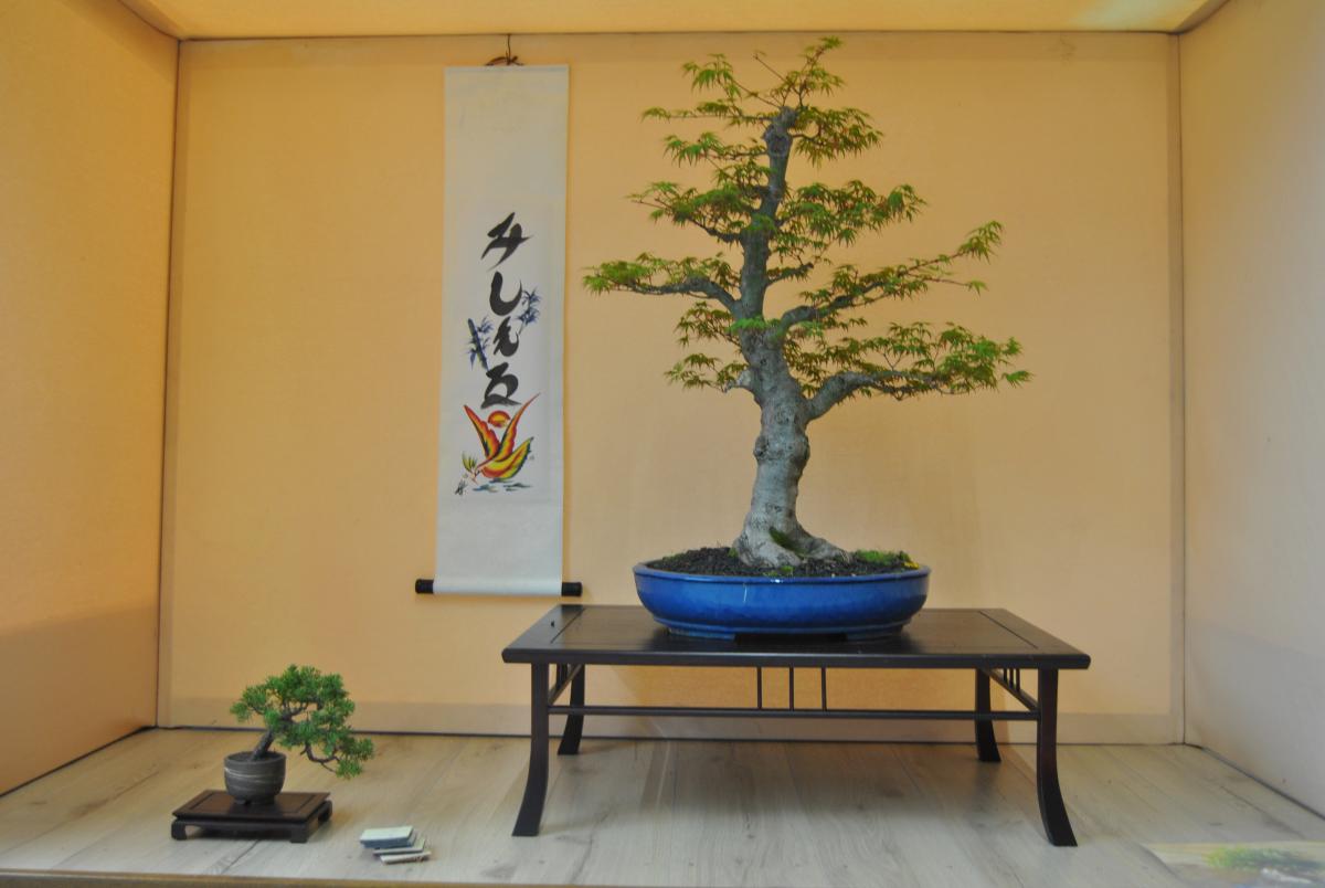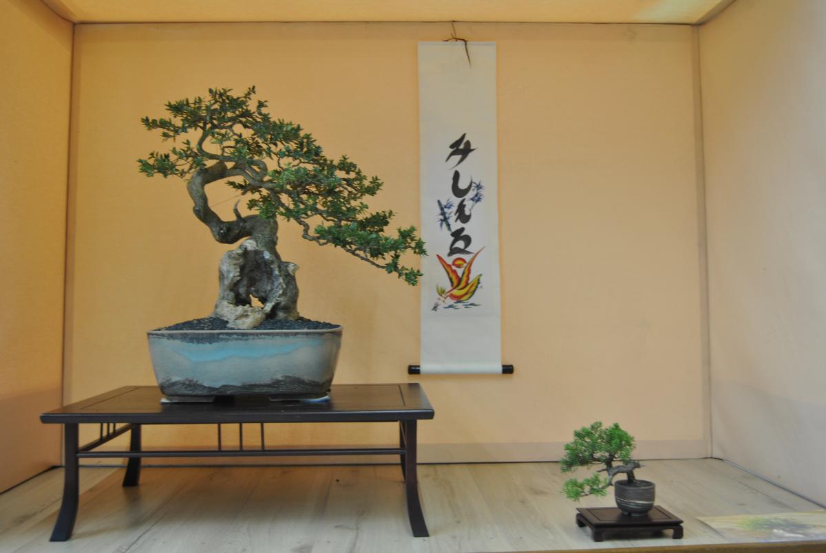 bonjour à tous, voici mes bonsais que je presente dans un tokonoma lors d’une expo que j’ai fait