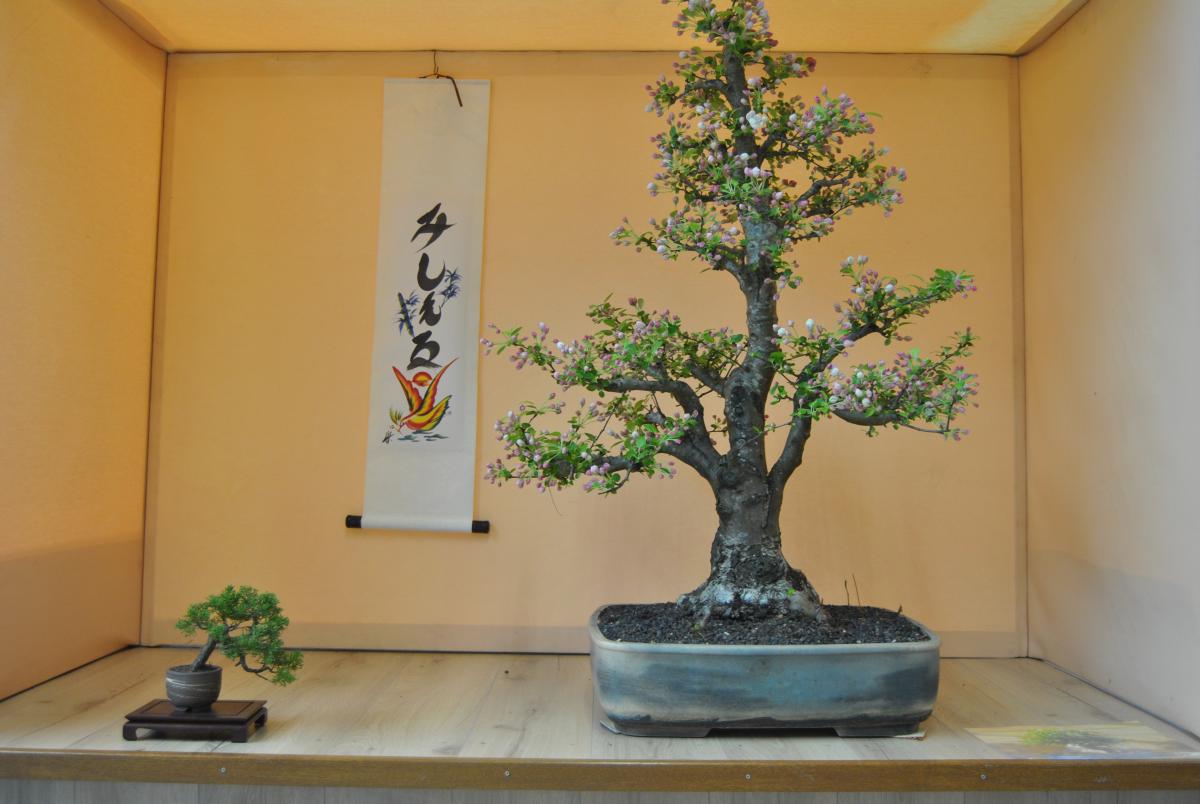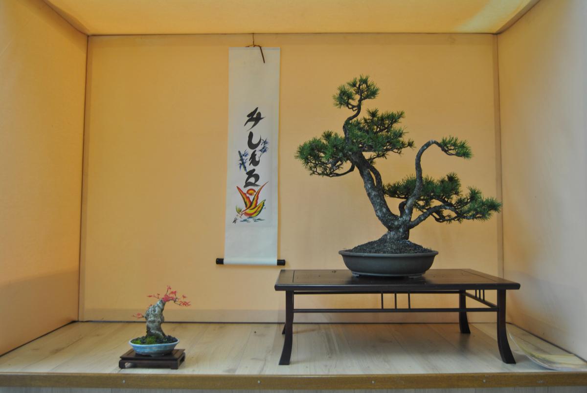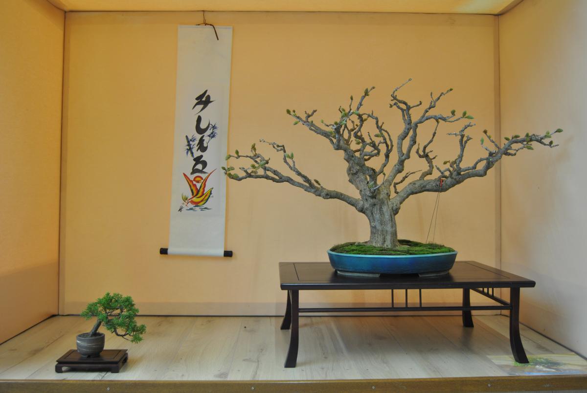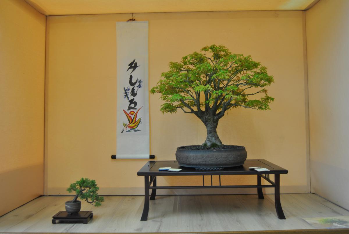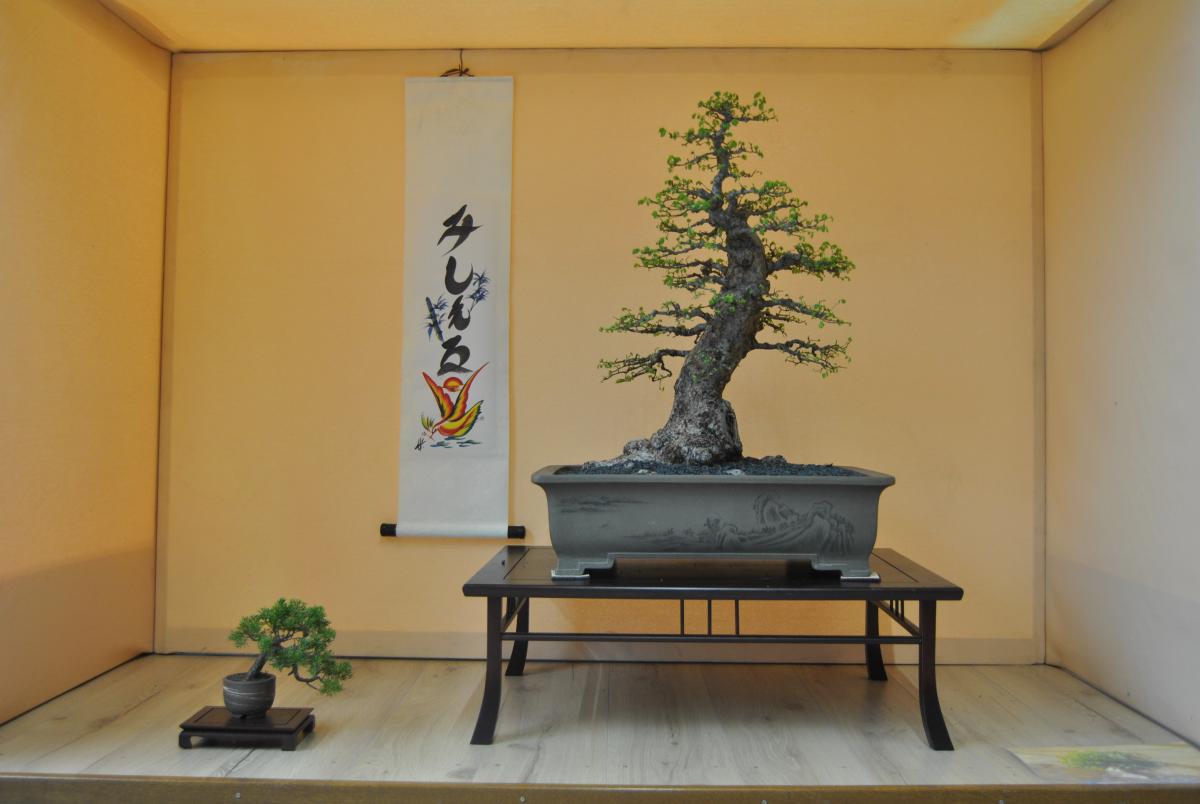 bonjour à tous, voici mes bonsais que je presente dans un tokonoma lors d’une expo que j’ai fait
