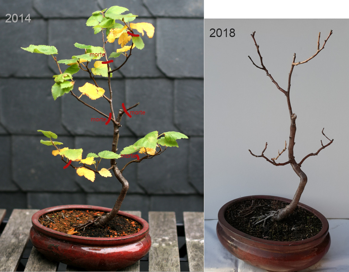 J'ai vécu ce que beaucoup qui se sont éssayés au bouleau ont vécu... perte de branche et retraits de sève, ramification anorexique, plus de problèmes que de solutions jusqu'à présent. Mais de belles racines, une rusticité qui le rendrait presque increvable, comme le montrera un autre bouleau que je vous présenterai à une date ultérieure.