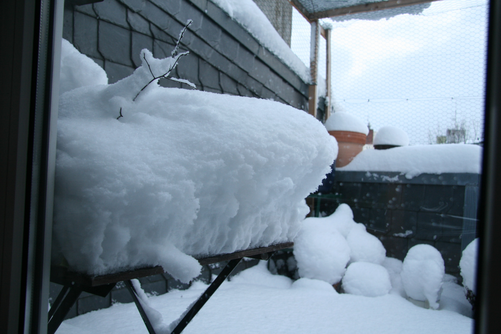 Hiver très rude sur la terrasse (c'est lui qui dépasse de la couche de neige), je ne m'étais pas encore documenté sur l'importance de l'impact du froid sur ces petits arbres en pot.