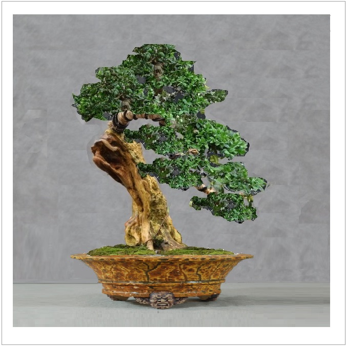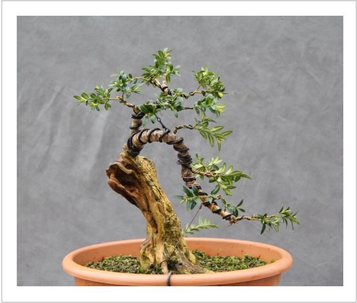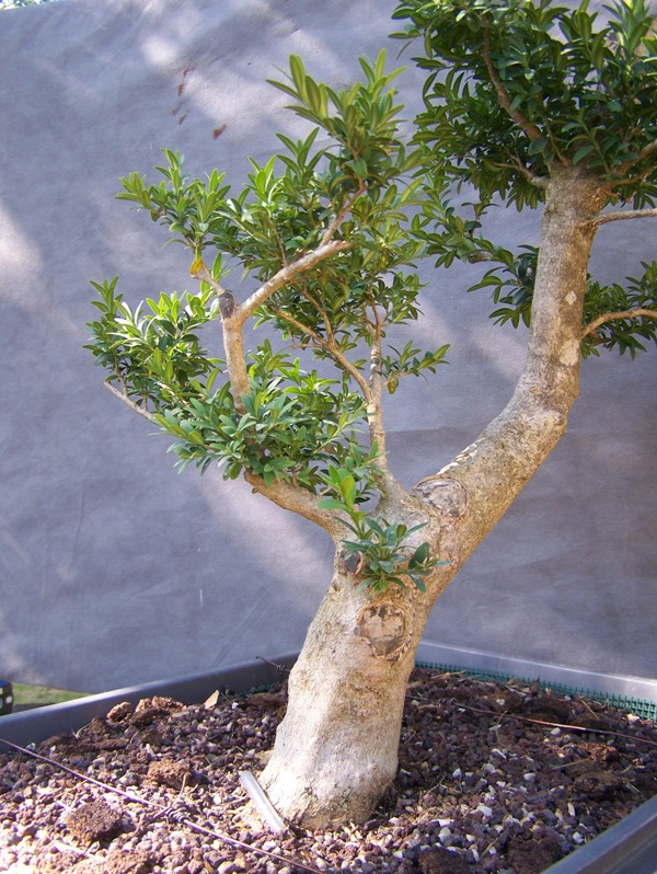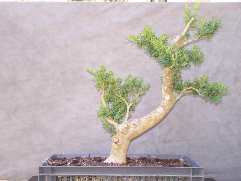Je cherche le chemin pour cette arbre. Au prélèvement, pourtant, ça m’avait semblé évidant : un chouette moyogi, classique certes, mais en le redressant il avait de la gueule. Et puis a force de tourner autour les défauts me sont apparus , du coup je suis maintenant dans le doute ! et je tourne en rond.