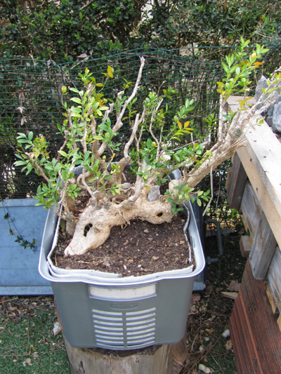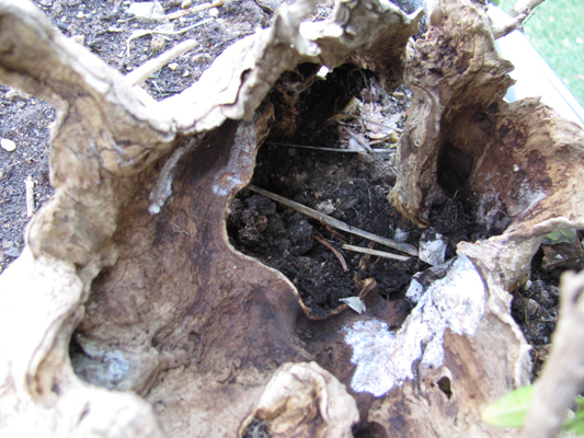 a moins que les deux groses racines ne corresponde en fait a la première vie de ce buis , en effet une fois néttoyer je ne suis aperçus qu’il s’agissait d’une ancienne souche dont tout le centre avait disparue au fils des années
