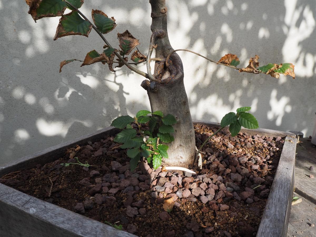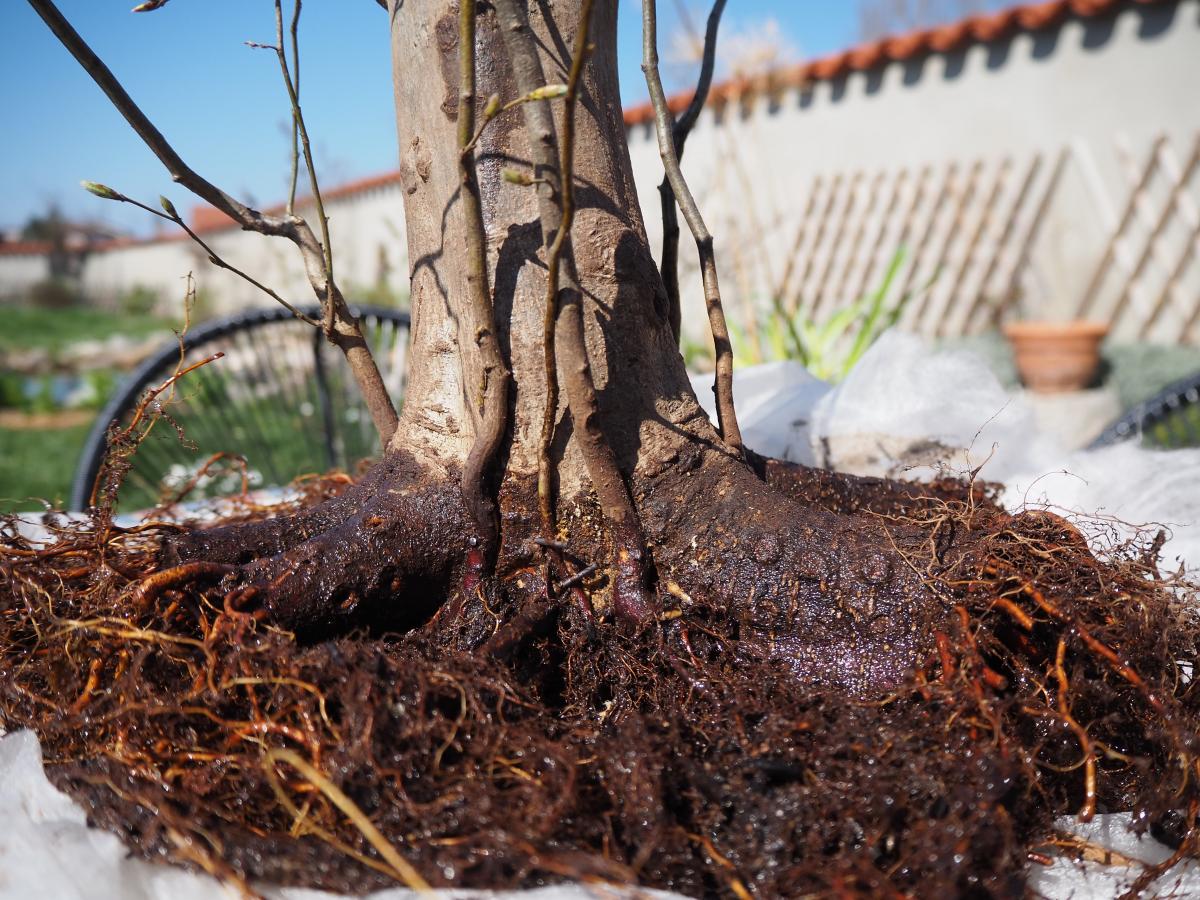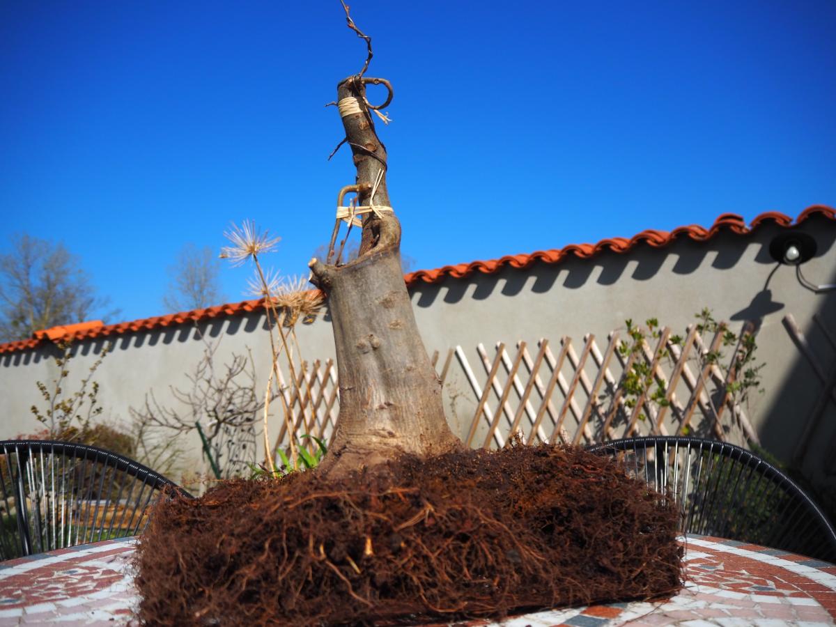 Au niveau du rempotage, j’avais greffé 6 ou 7 jeunes plants au nebari pour apporter de la racine et faire grossir la base.
