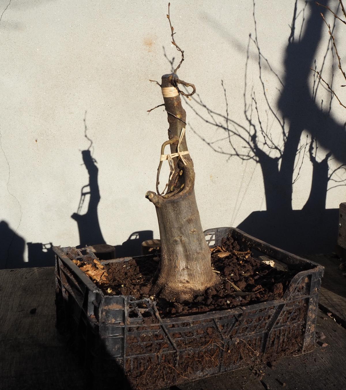 Le printemps suivant, si la greffe prend, j'imagines le ré-enrouler une deuxièmement fois à l’intérieur, et ainsi de suite jusqu’à fermeture complète de la coupe!