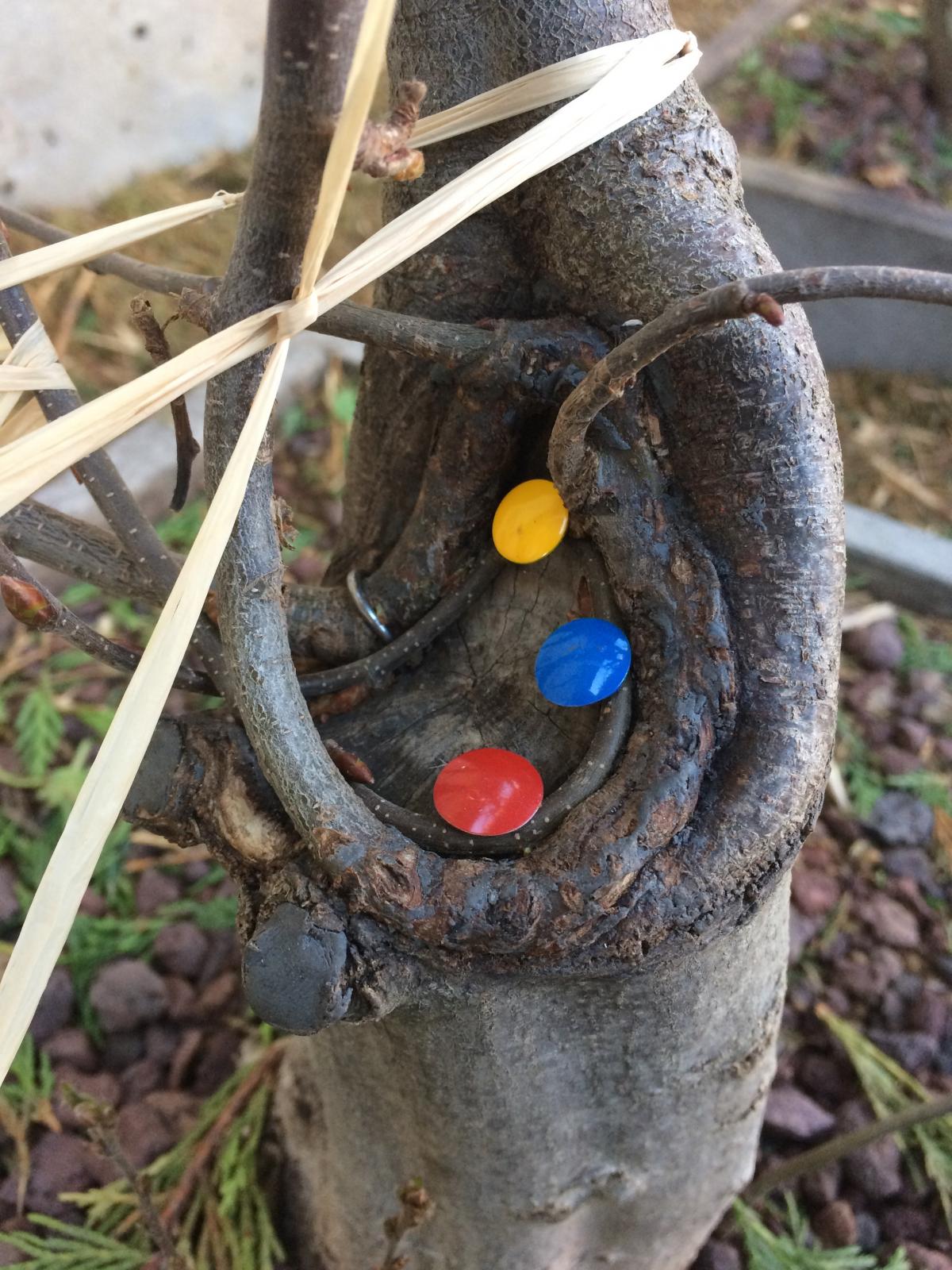 Pour l’autre partie de la greffe, avec la tête en bas (coté gauche), c’est plus délicat, mais j’observe à ce jour ce qui me semble être une fusion, à confirmer dans le temps.