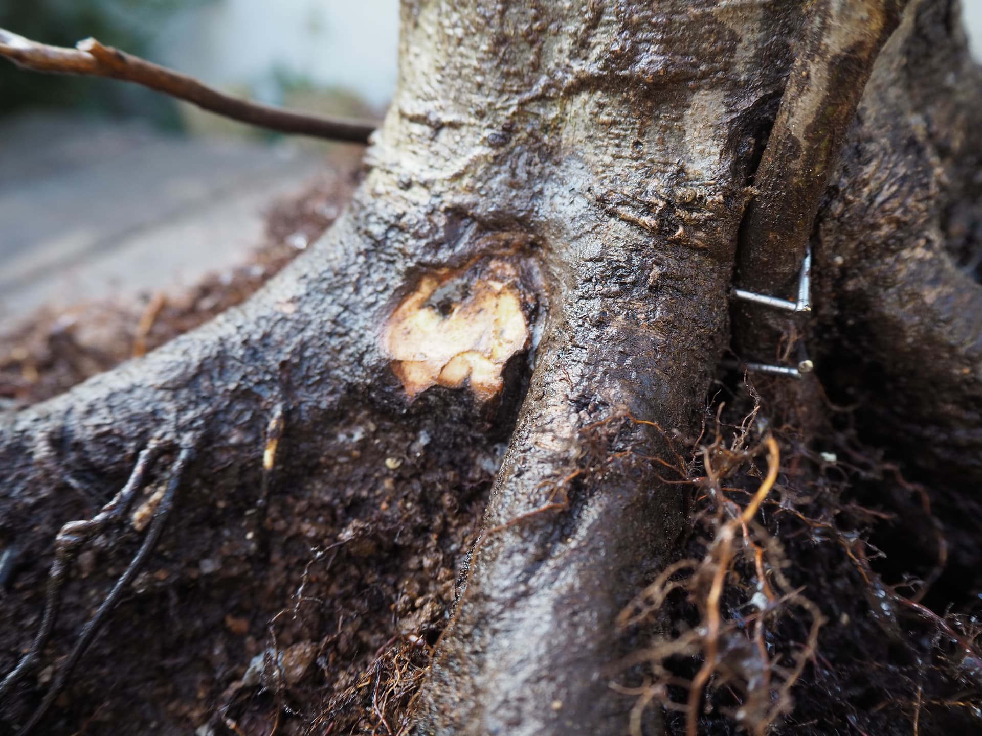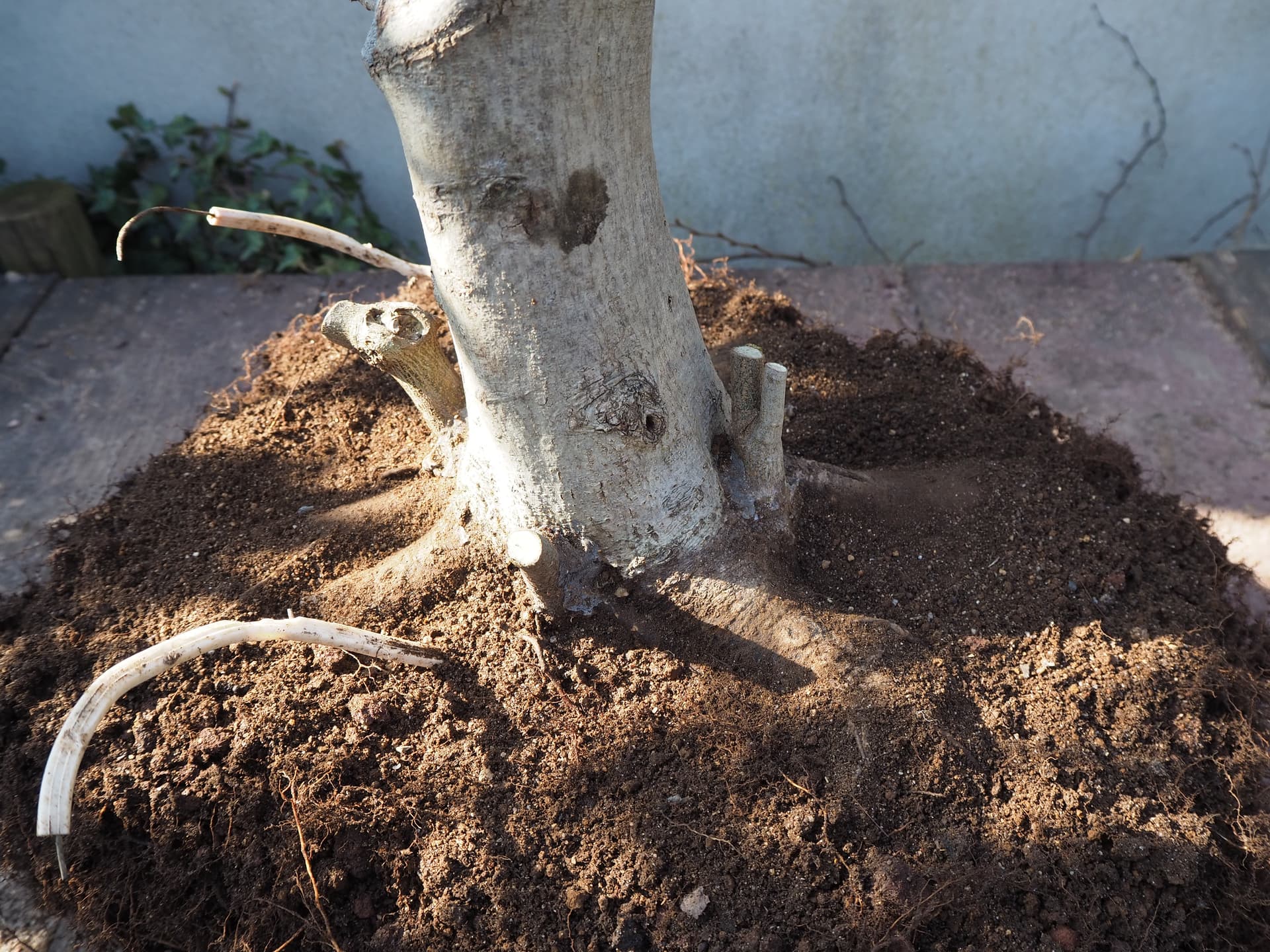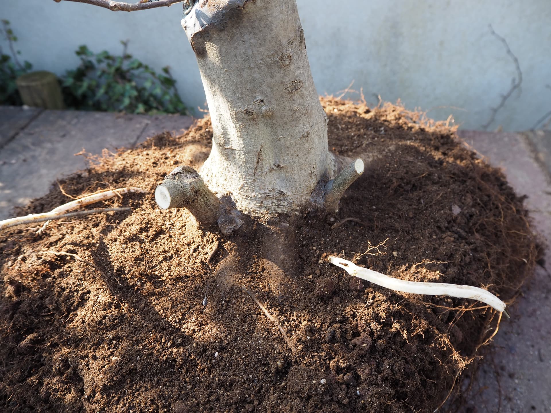Ensuite j’ai sorti l’arbre de sa caisse pour travailler le racinaire.