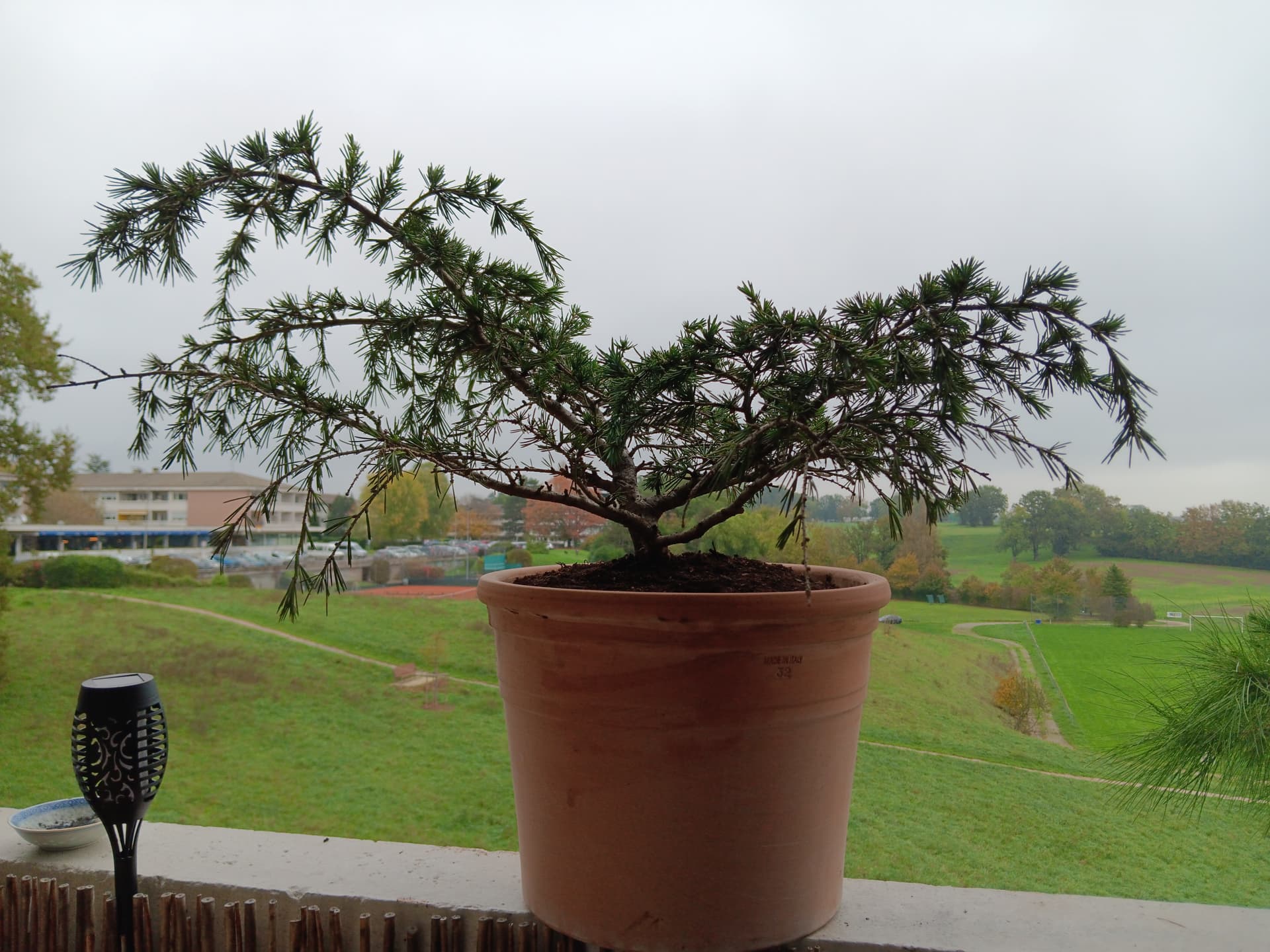 Quand je regarde le plant, je lui trouve une tendance à être très fort du bas, c’est courant chez les conifères de rocailles qui sont bouturés et dont les boutures ont une forte tendance à la basitonie. Il faut donc en tenir compte dans le projet, j’avais un petit mélèze dans cette situation qui n’a commencé à évoluer que quand j’ai renoncé à essayer de le faire pousser vers le haut.