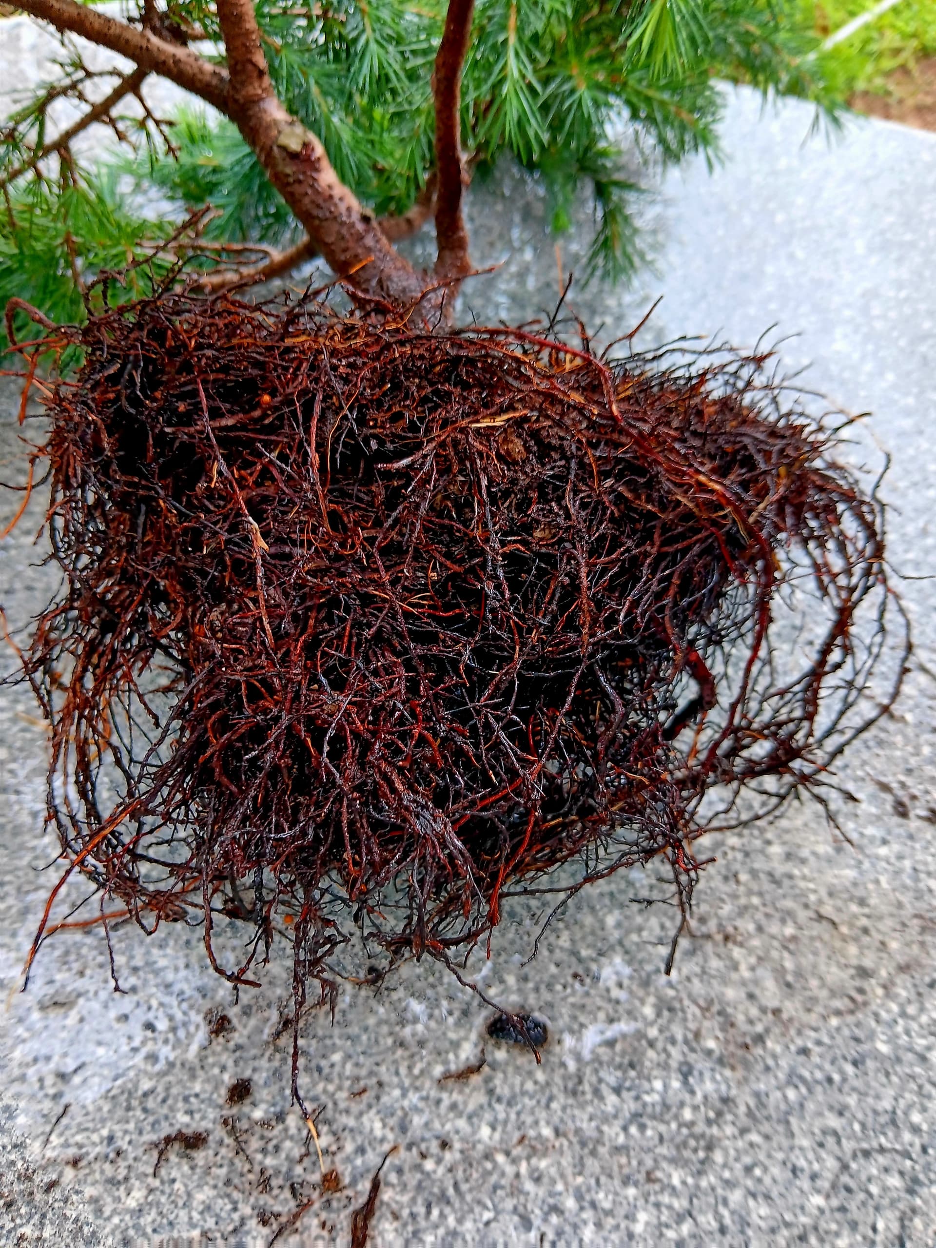 Ce n’est pas du tout assez, il fallait surtout démêler pour pouvoir mettre les racines à peu près à plat, de manière à ce qu’elle se dirigent bien vers l’extérieur, et ne pas avoir une grosse épaisseur. Je pense que l’arbre peut survivre avec le quart du racinaire que tu as laissé.