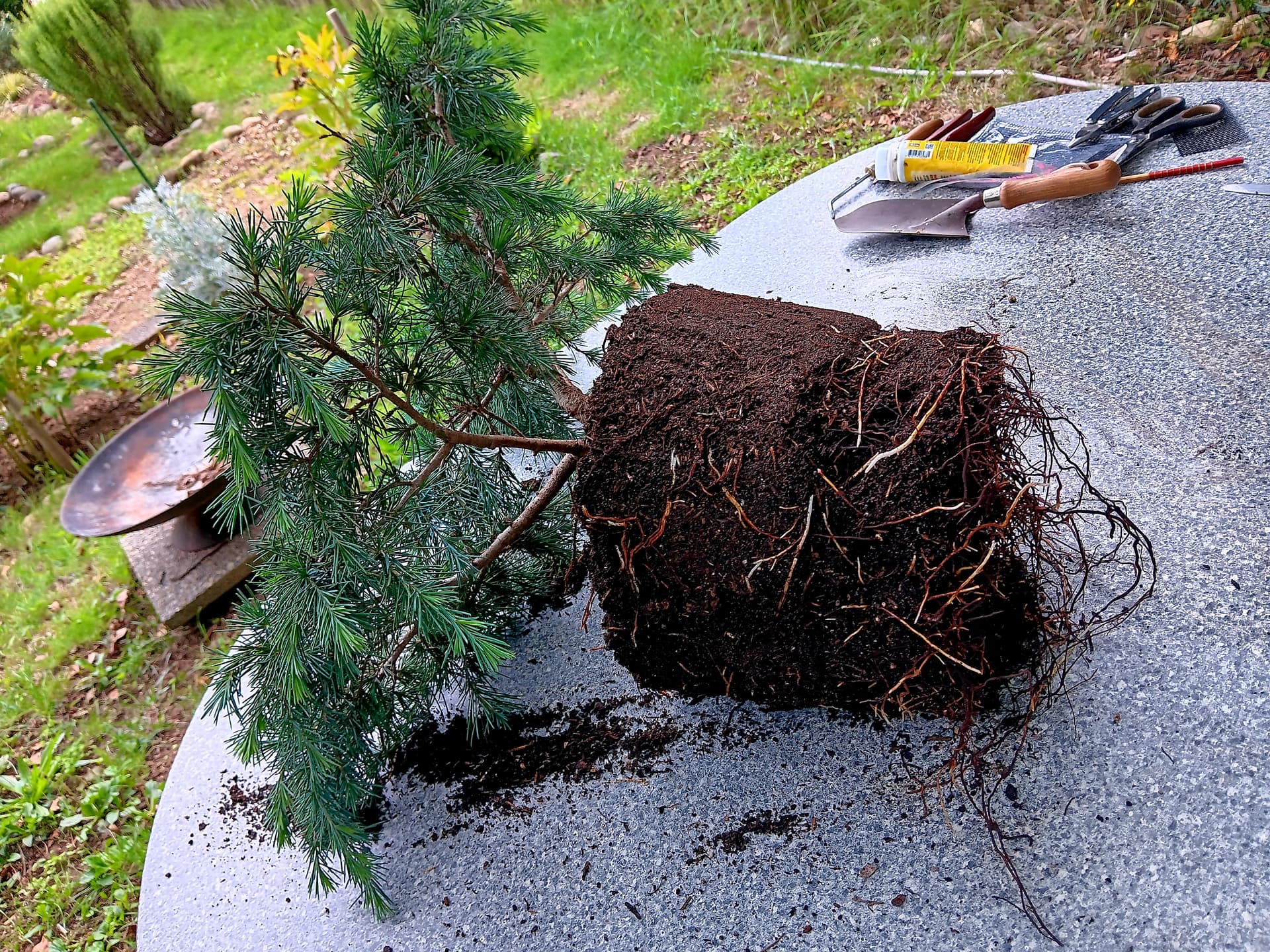 C’est vrai que tu as laissé beaucoup de racines, mais mieux vaut trop que pas assez car on préfère un arbre vivant avec un racinaire à re-travailler 2 ans plus tard, qu’un arbre mort.