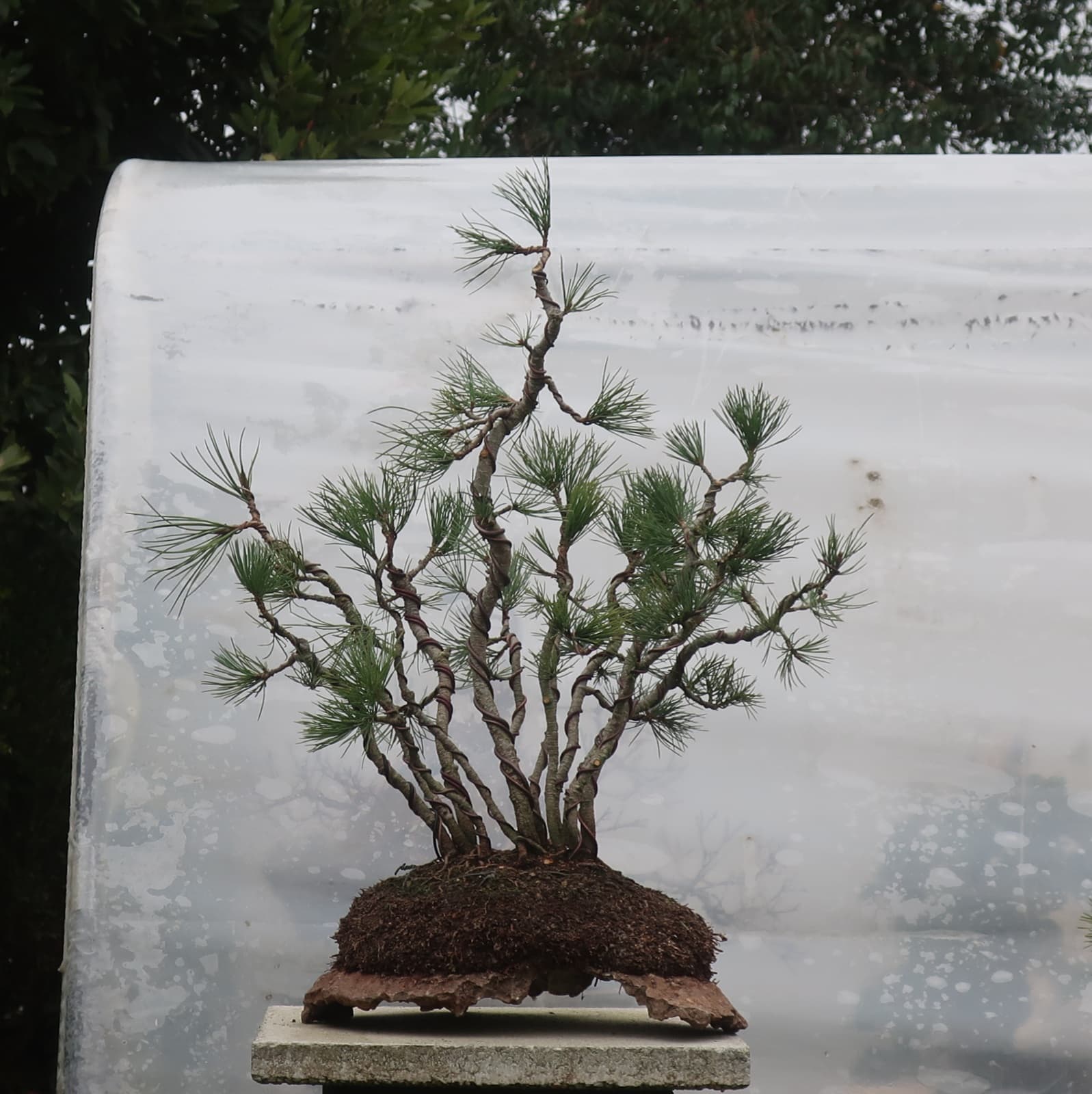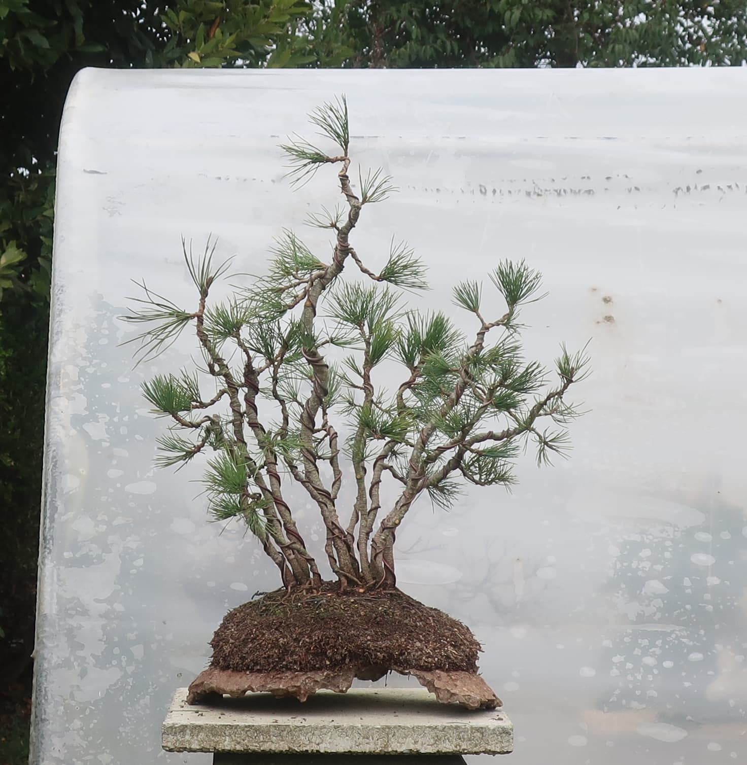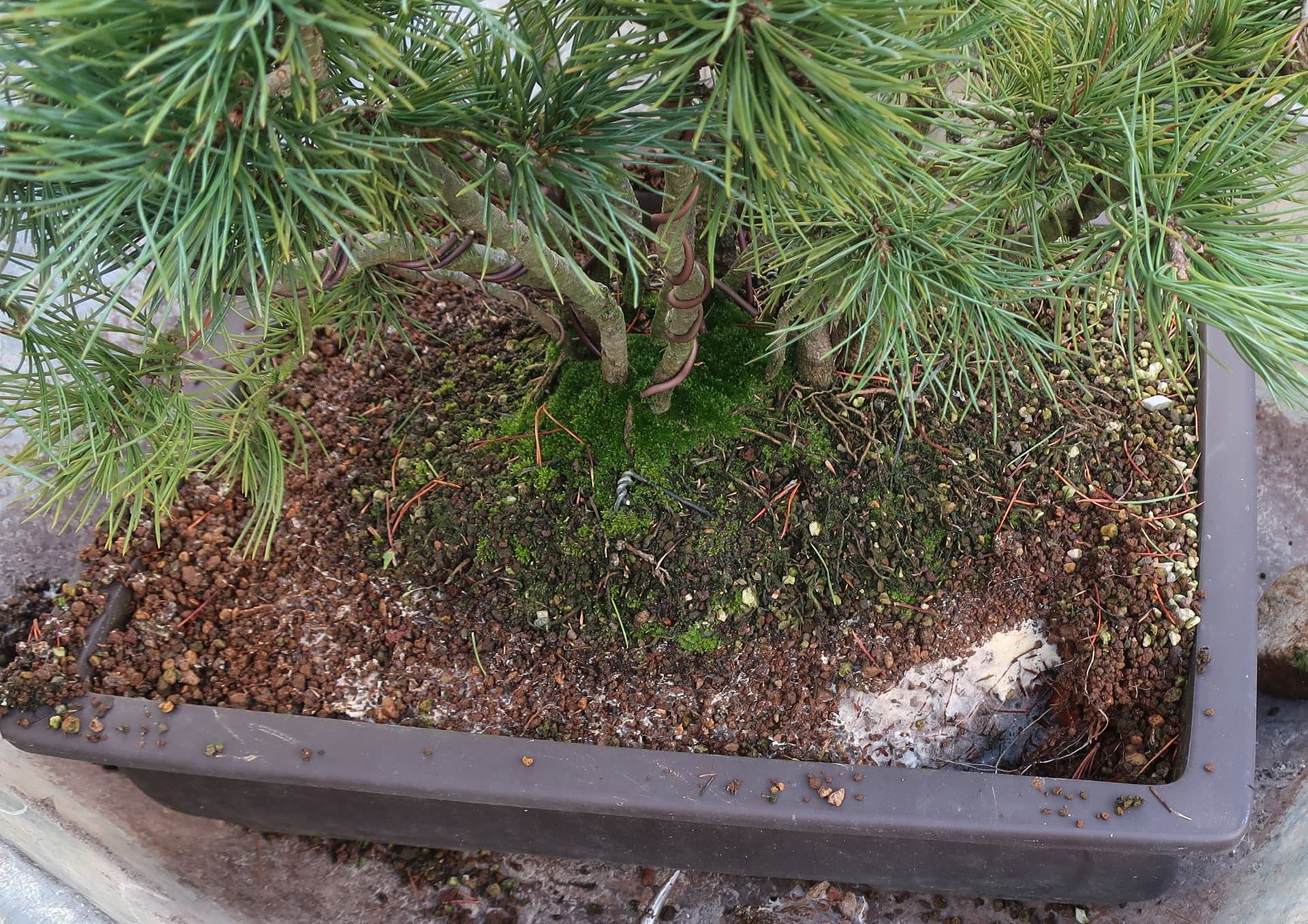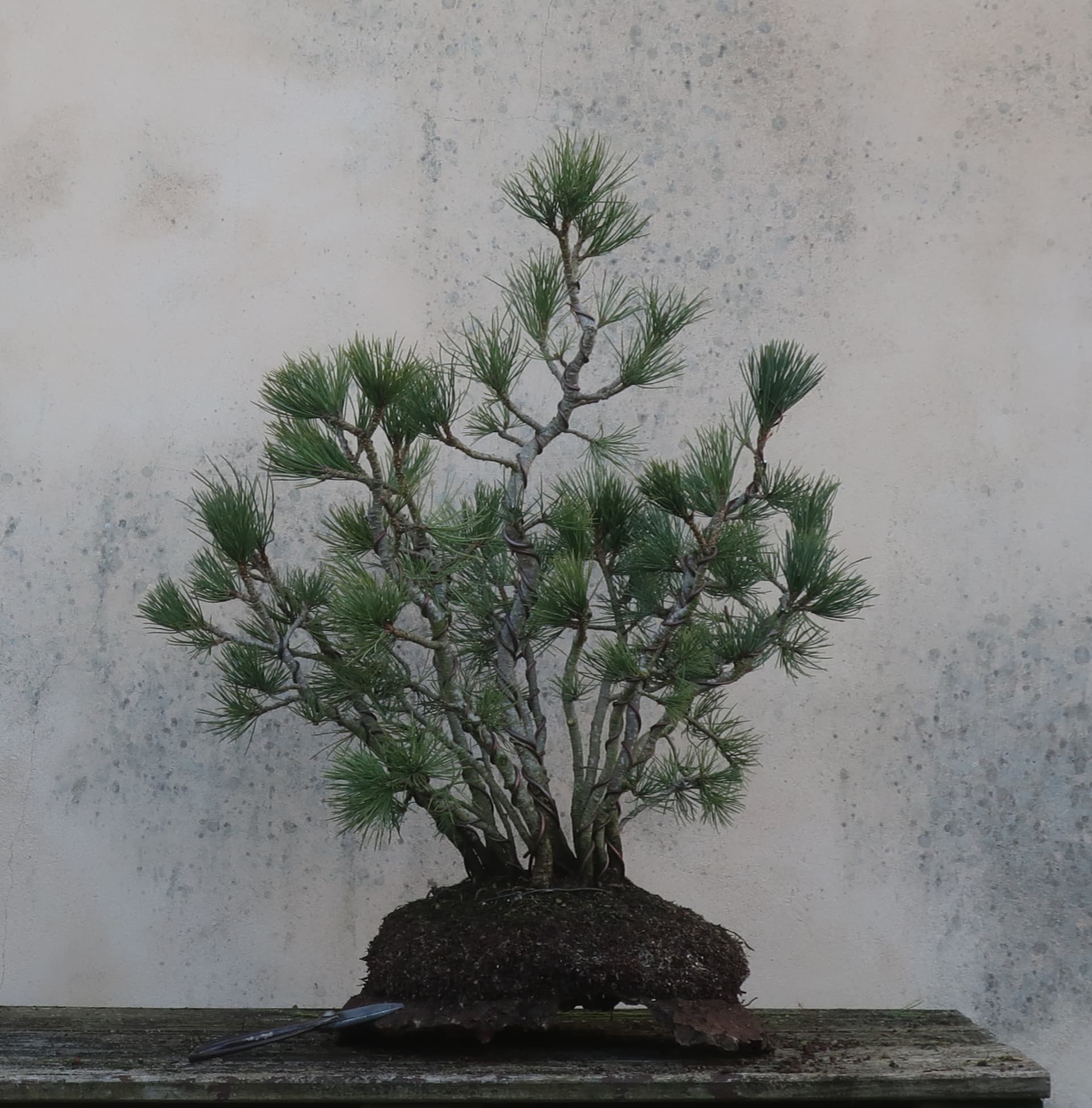 c’est donc un groupe sérré issu de semis, qui m’a carrémment tapé dans l’oeil à la pépi botanique armoricaine car ça faisait longtemps que je voulais cultiver du pin à 5 aiguilles et je voyais un bon potentiel en Bonsai de cette cépée.