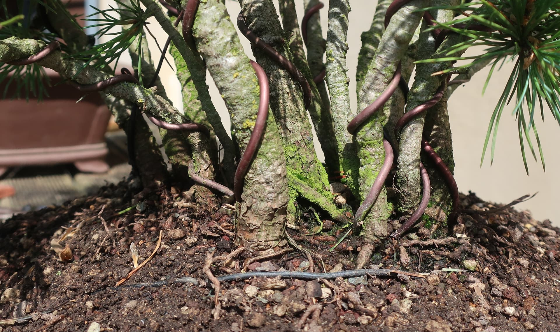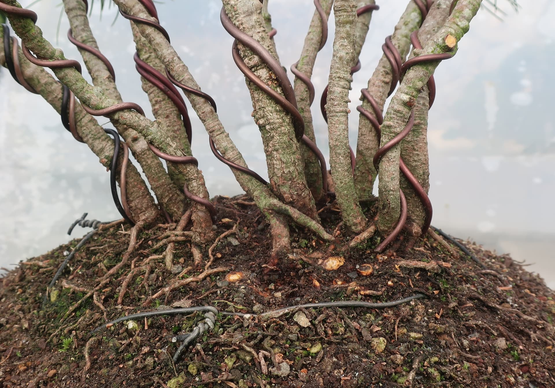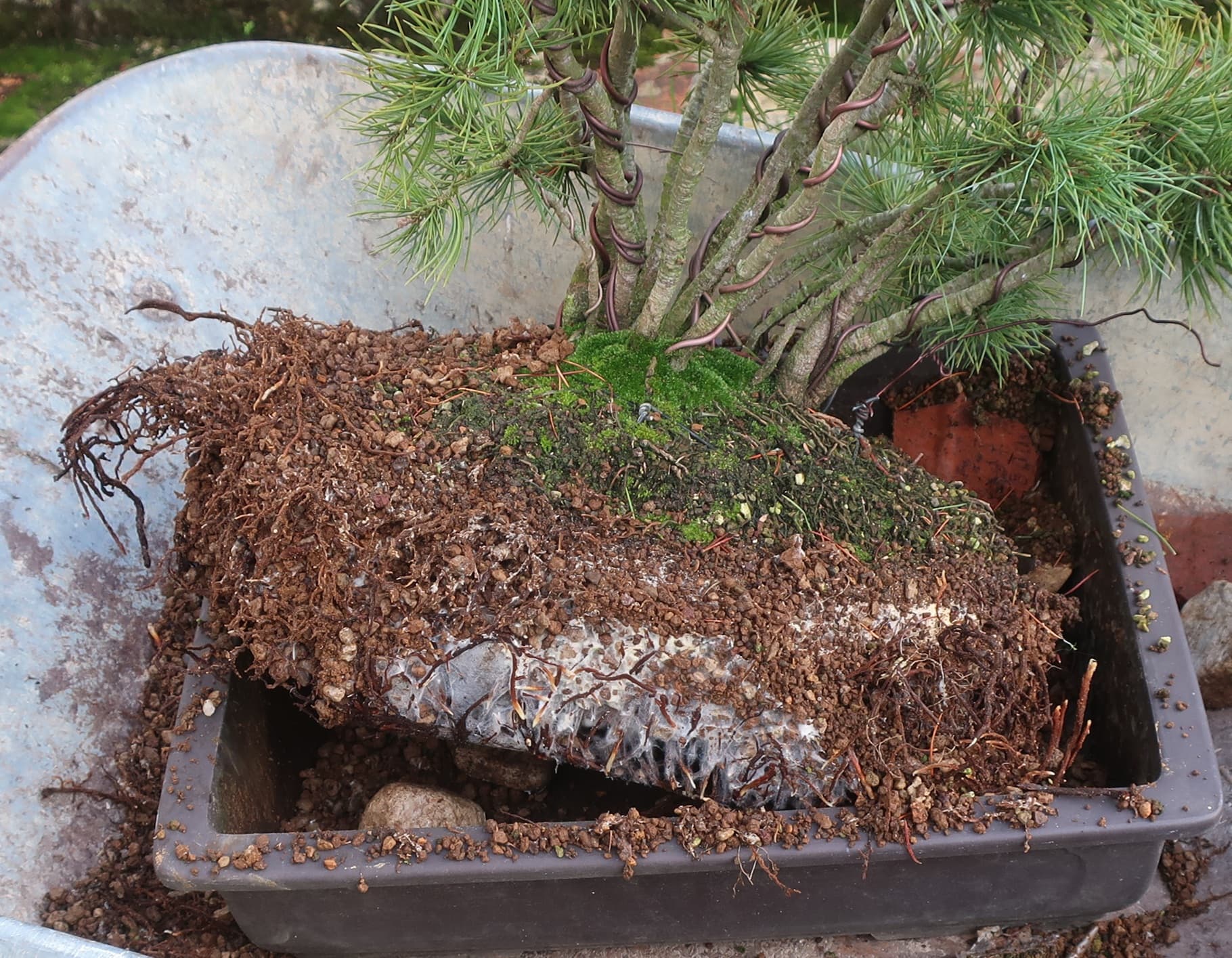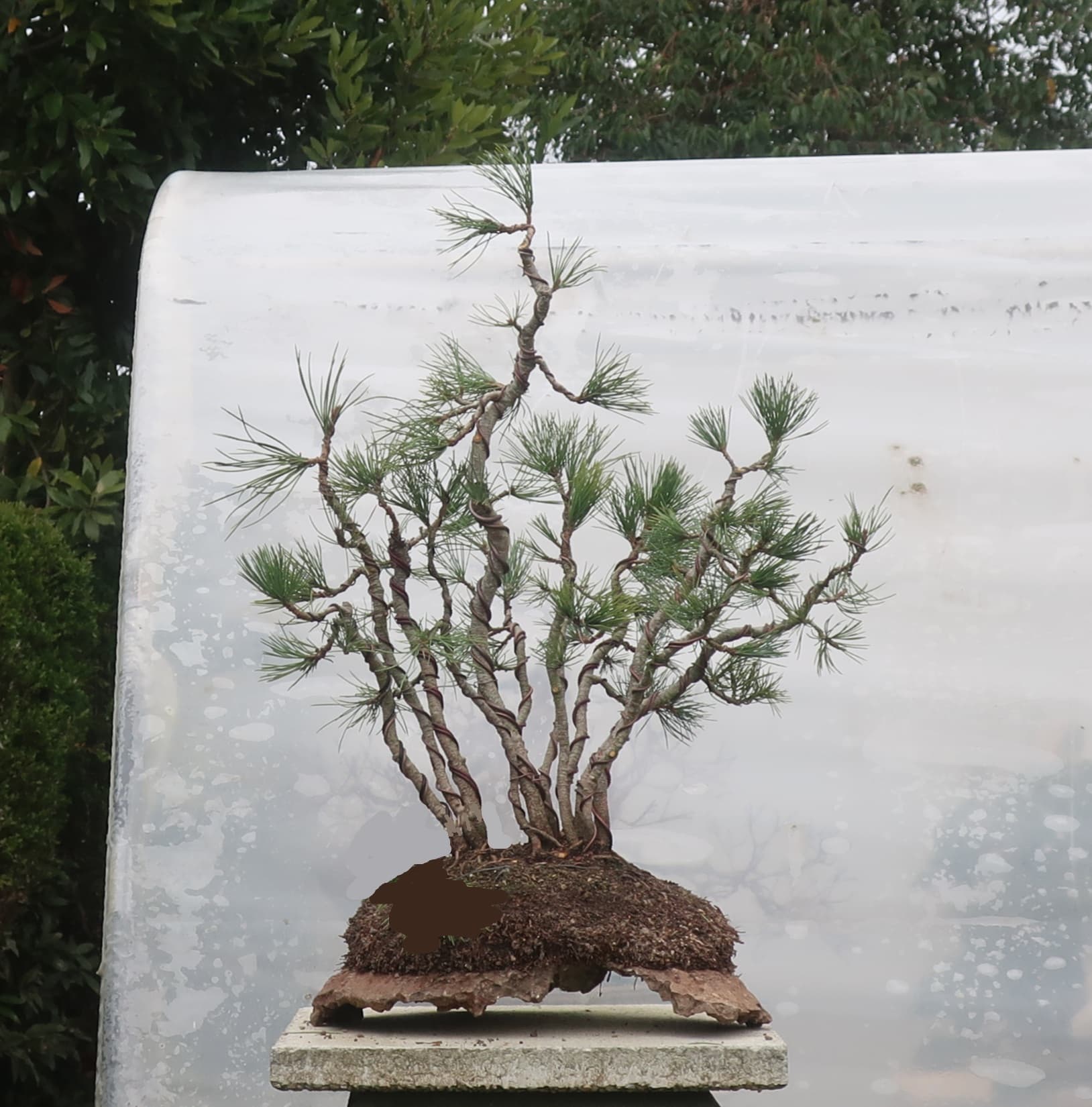 c’est donc un groupe sérré issu de semis, qui m’a carrémment tapé dans l’oeil à la pépi botanique armoricaine car ça faisait longtemps que je voulais cultiver du pin à 5 aiguilles et je voyais un bon potentiel en Bonsai de cette cépée.