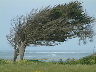Il me semble qu'il y'avait un post sur ce forum qui expliquait les différents vents dominants et leur impact sur la végétation en fonction de leur puissance et régularité.