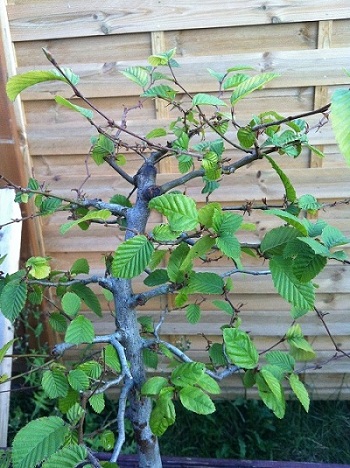Voici un charme que j’ai acheté en fin d’année dernière. Le voici après le rempotage de ce printemps (j’avais oublié d’enlever l’étiquette lol…)