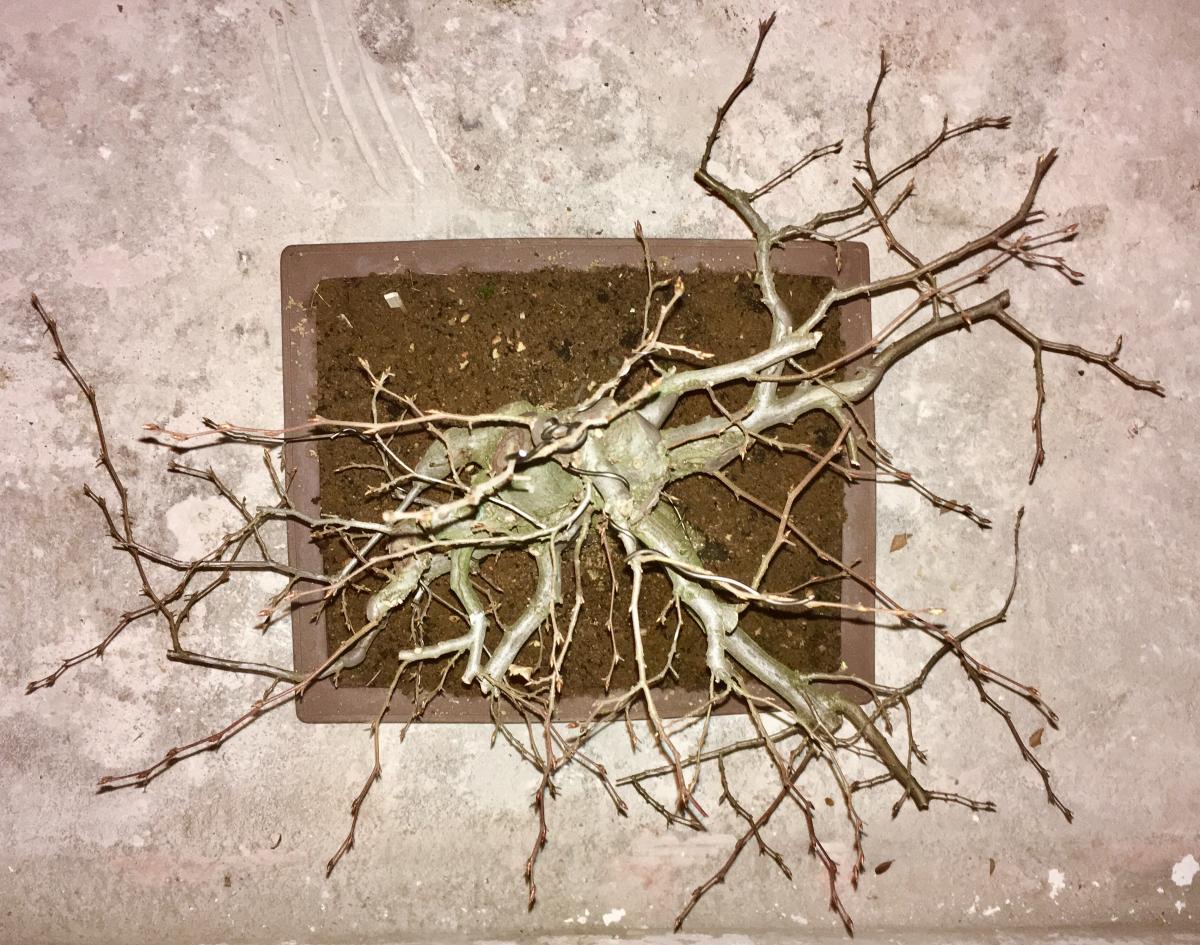 Voici l’arbre 3 ans après, 1er travaux depuis le prélèvement : rempotage !