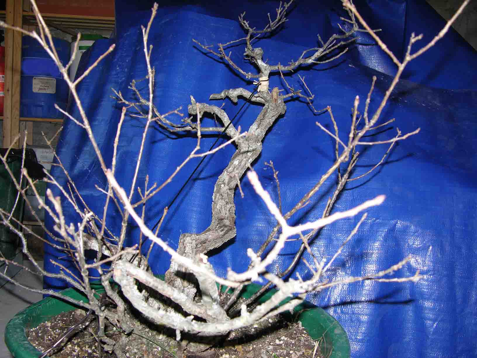 je poste quelques photos de ce chêne prélevé cet automne (après la chute des feuilles) ds la proprièté d’un ami.le prélèvement c’est bien passé une belle motte a pu être conservée ensuite il a été transplanté (sans toucher à la motte d’origine) ds un substrat drainant. il faut bien sur attendre sa reprise et lui laisser une bonne année de repos. Plein de rejets apparaissent à son pied j’envisage de les utiliser. je pense aller vers le style Burton car je pense qu’il sy prête assez bien.