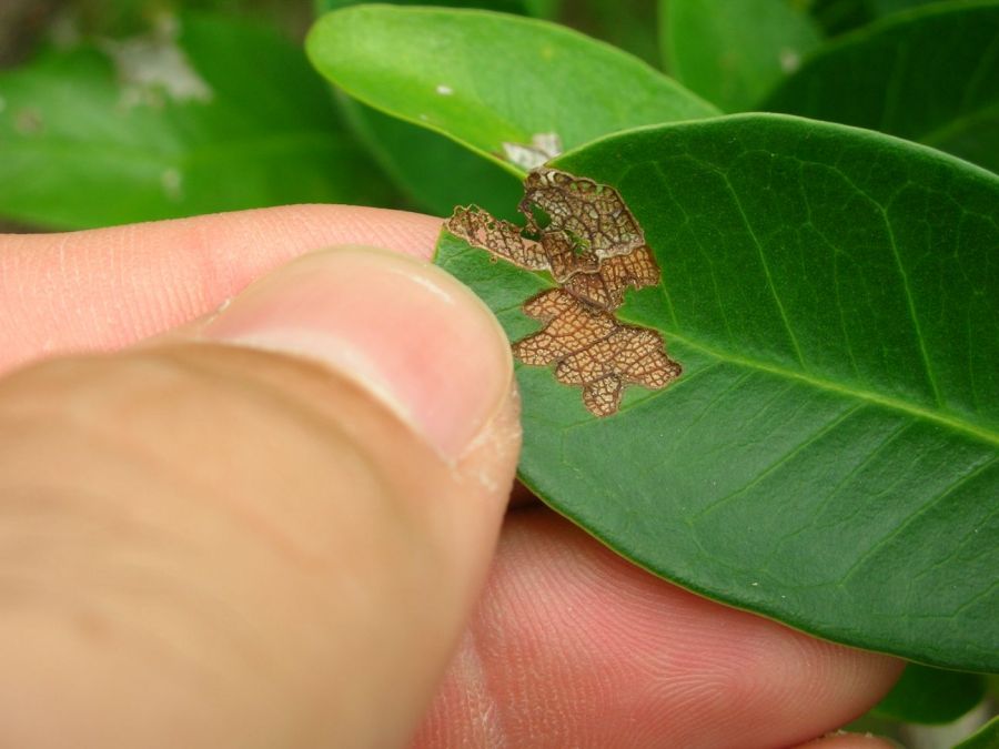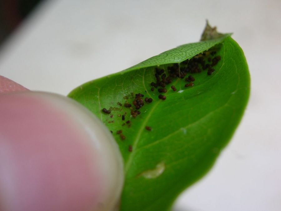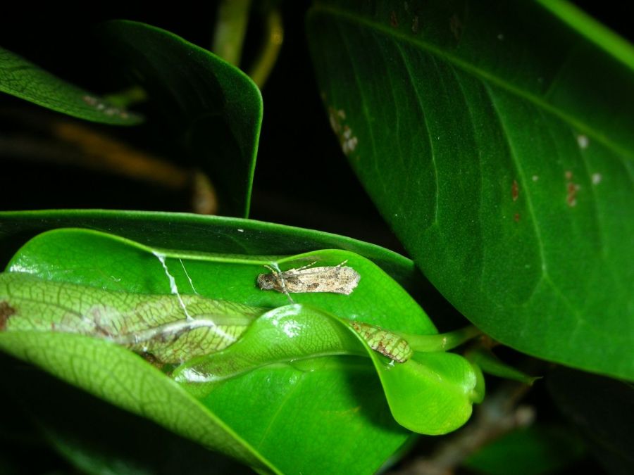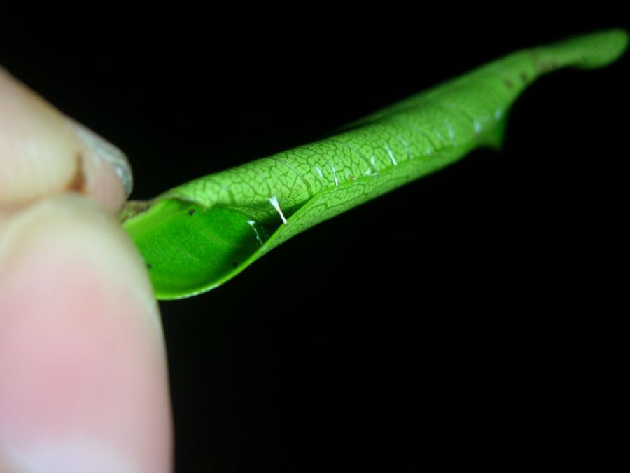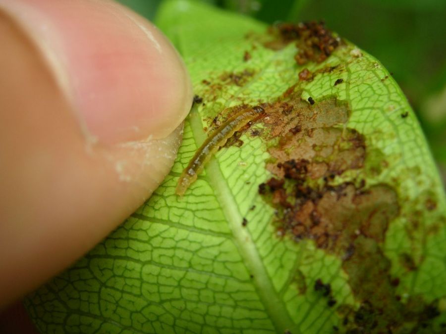 Séquoia m’a dit qu’il s’agissait peut être de larves vivant dans le sol qui remontent sur les feuilles, mais je n’ai rien vu dans le substrat.