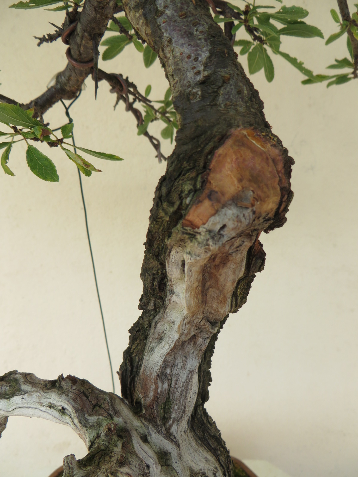 il est très beau, j’aurais pour ma part laissé un petit jin pour raconter une histoire : le tronc a changé brutalement de direction car le tronc initial est mort et est devenu ce petit résidu de jin qui raconte une histoire. Et en plus, je trouve qu’un petit jin ajoute une décoration et du caractère à l’arbre.