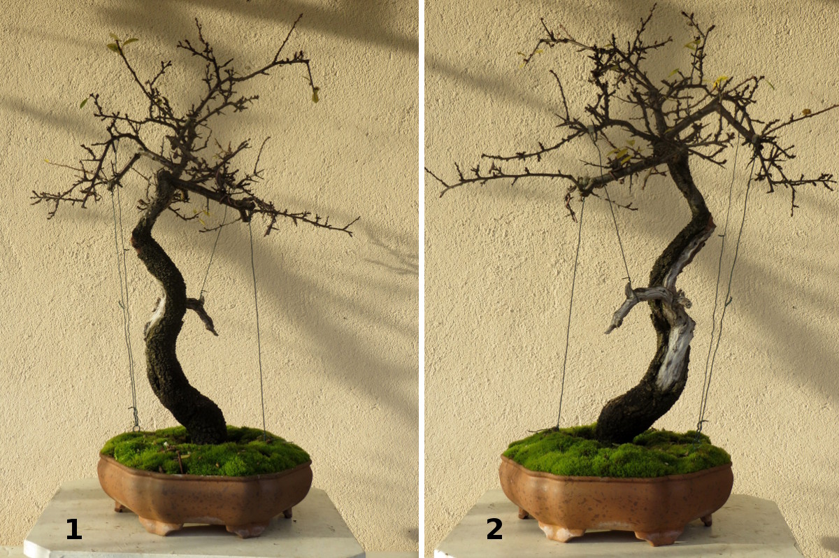 ps : et sur ton arbre, je trouve qu’il est plus elegant sans ce jin sur la 1ere photo (coté ecorce) où le mouvement du tronc est le point fort. En revanche, si tu choisis la face avec shari, ce petit jin ajoute du caractère et renforce le coté sauvage, l’arbre qui a souffert des conditions climatiques difficiles.