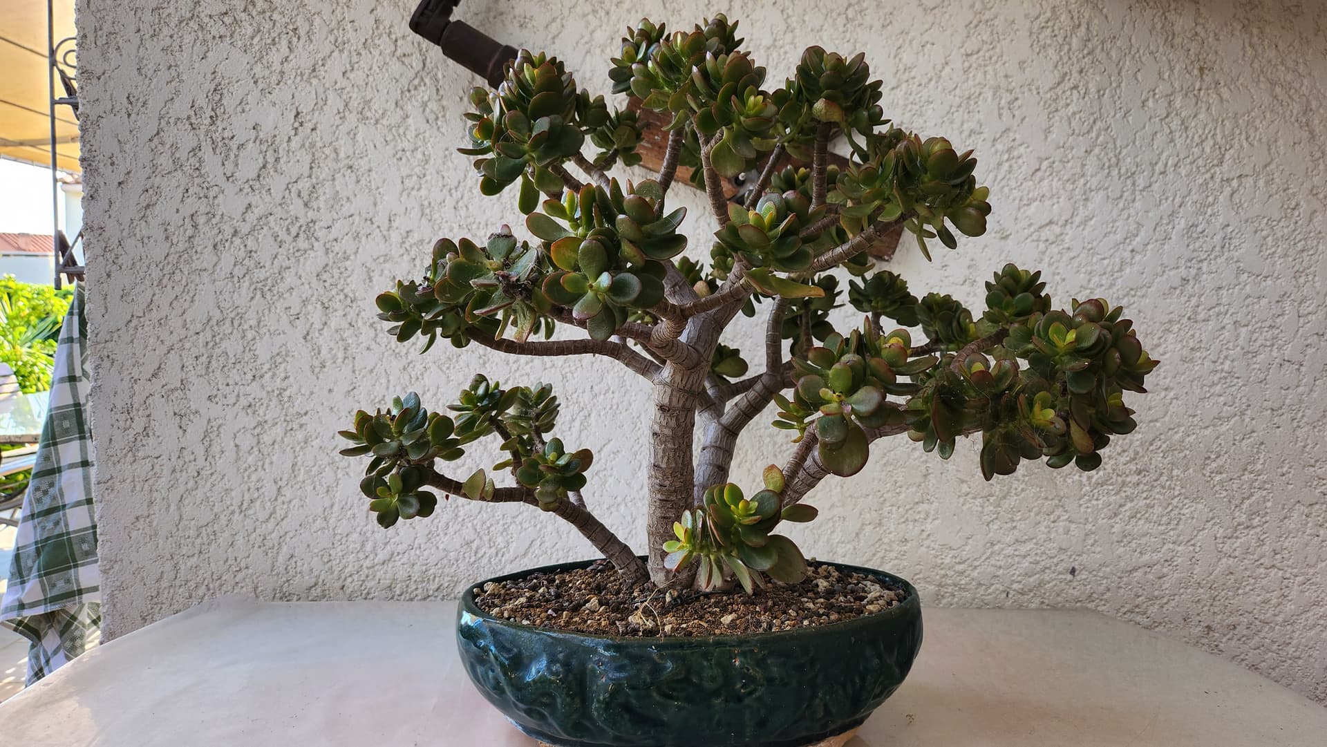 Un arbre de jade issue de bouture d’un crassula de jardin moribond faite en juin 2019, qui n’était a la base pas faite pour faire une vie en pot.