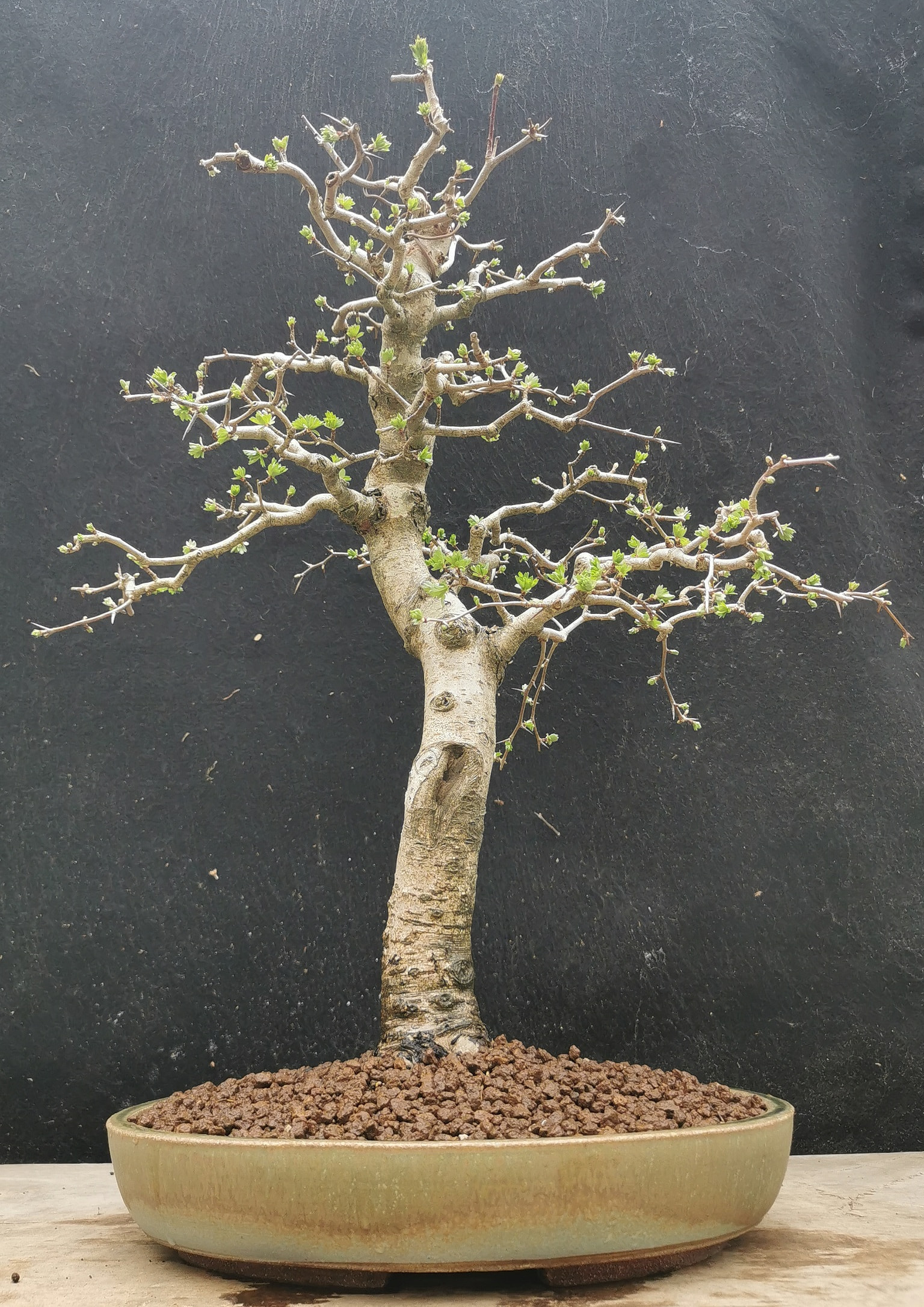 Rempotage effectué, j’en ai profité pour lui réduire sa hauteur et lui faire une petite taille. Le nébari est sympa et bien étoilé.