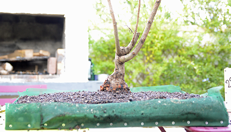Printemps 2013 : taille de la racine pivot et mis en caisse de culture (40x50x20), substrat : pouzzo/tourbe blonde