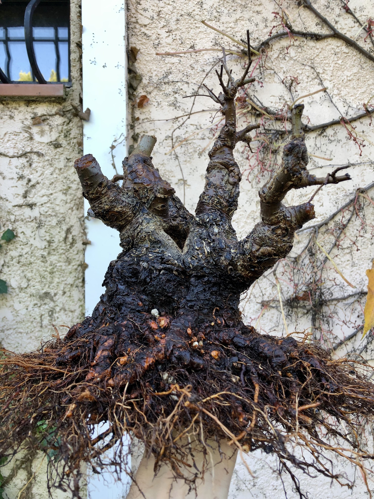 Va falloir que je me le grave dans le crâne. 3 ans entre deux rempotage c’est trop. Le nebari est moins joli que la fois dernière il me semble. Il est un peu plus grossier.