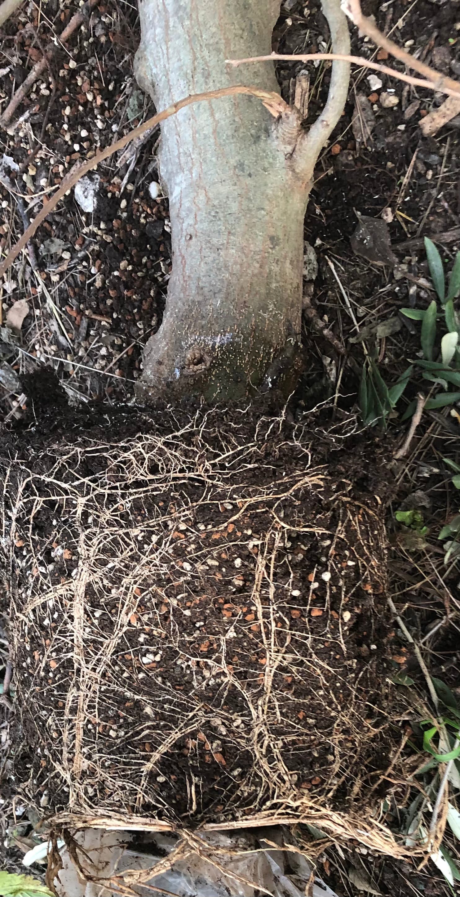 Mais même si le dispositif de marcottage mis en place est moins large et que les nouvelles racines plongent dès qu’elles passent le bord du disque plastique, ce n’est pas très grave, ce sont les premiers cm qui sortent du tronc qui comptent.